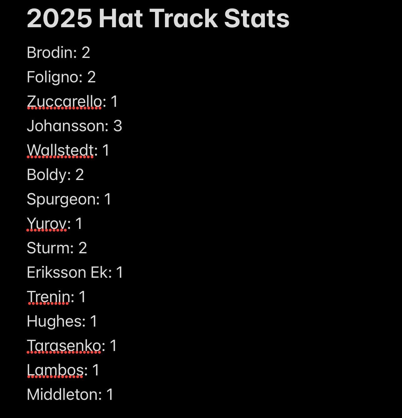 Here is the compilation of how many times each player got the hat in 2025. Please let me know if you have any other suggestions for me!!