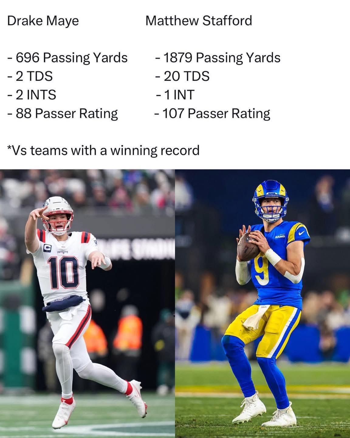 1. Everyone saying drake maye for mvp has only seen the 2 bad games stafford had and the loss to seattle. Anyone who watched stafford all year knows he is mvp