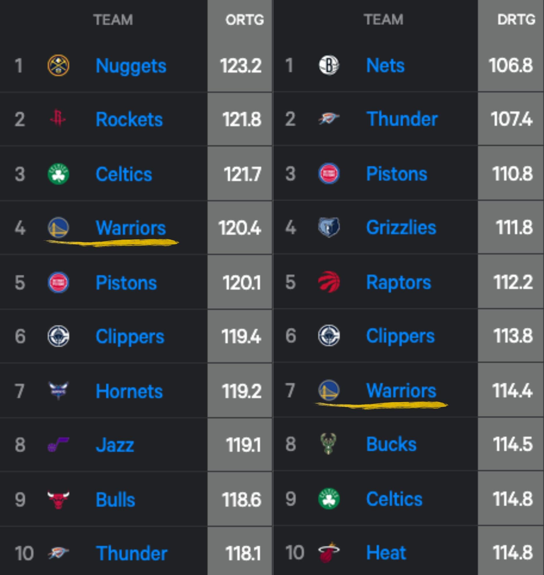 Golden State Warriors are #4 in offense & #7 in defense over last 10 games.