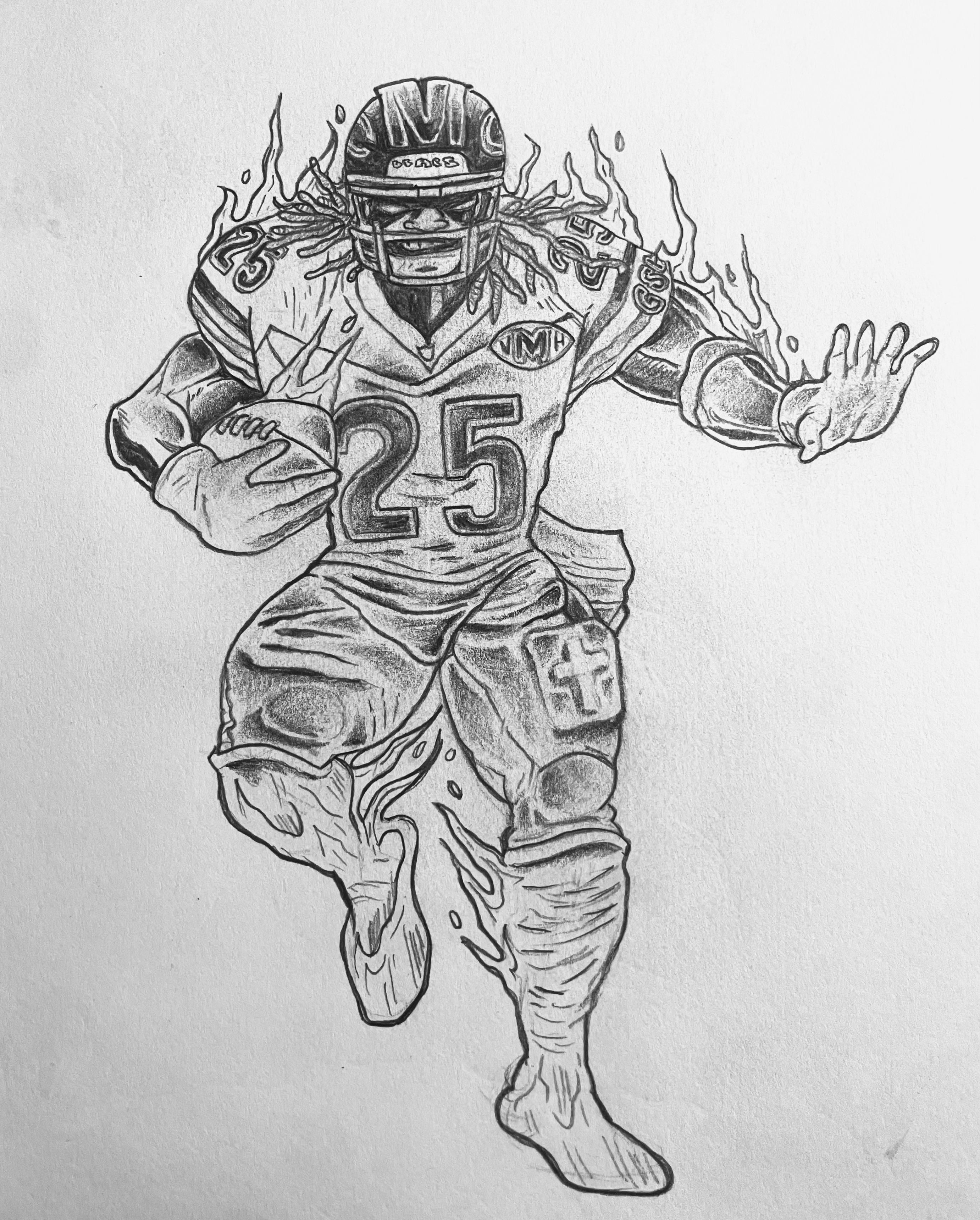 Finishing drawing of Kyle Monangai from the Bears (aka Mo’ Run Guy). Drawing these superhuman alter egos of these Bears players is becoming a lot of fun! 🐻⬇️