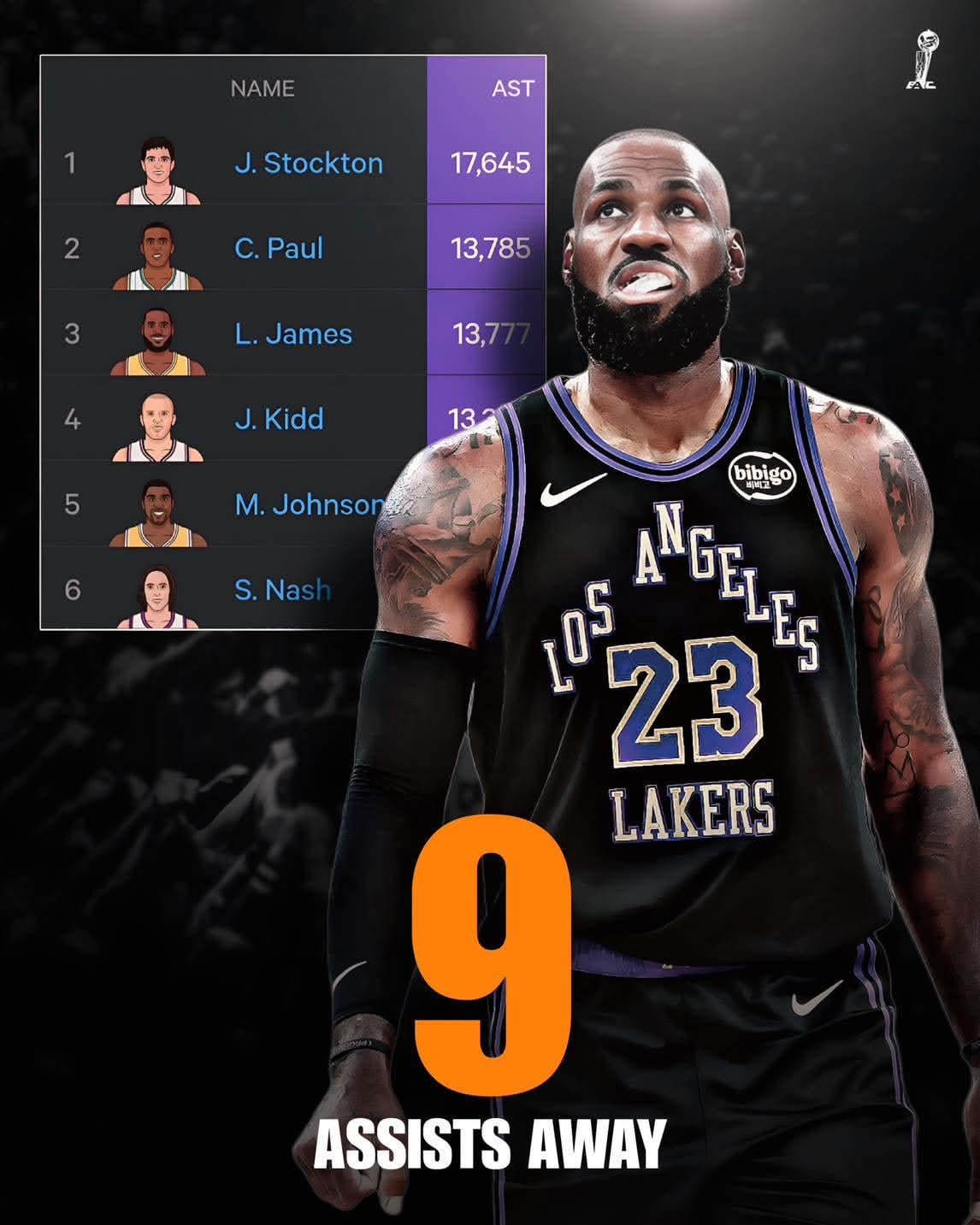 8. It’s crazy to think if not for John Stockton, LeBron would be number 1 for all time assists as well