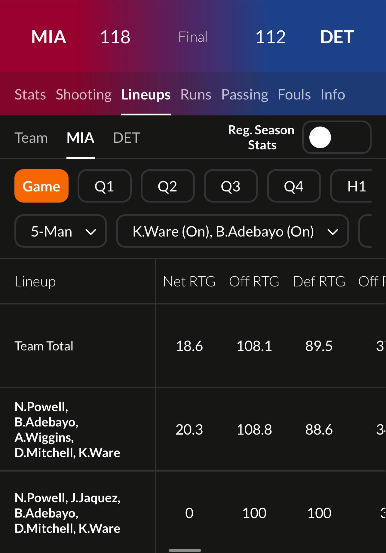 Jus off the eye test the lineups have looked better lately and i don’t see spo going away from ware bam anymore wonder what they’ll do when herro is back