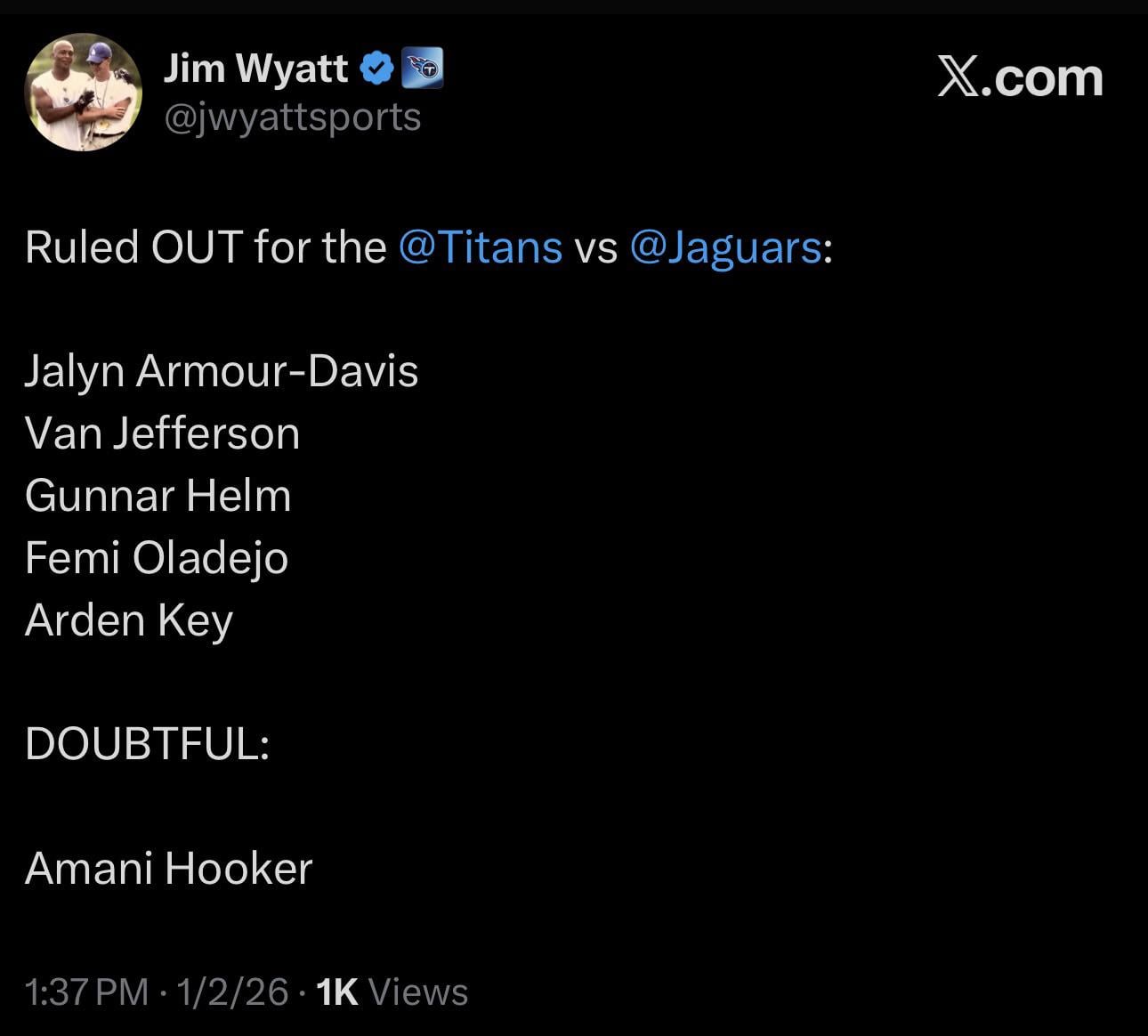 Titans injuries heading into their final game