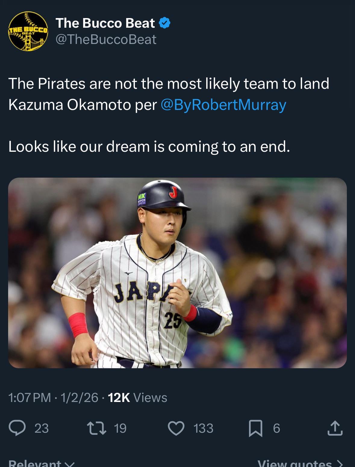 Not the end of the world if Okamoto doesn’t land in Pittsburgh.