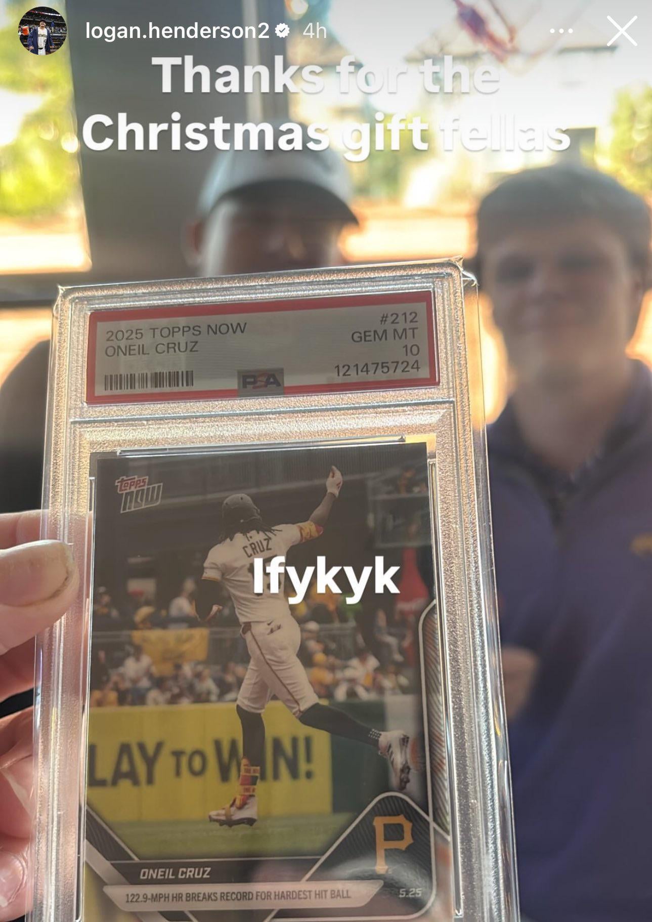 Brewers pitcher Logan Henderson’s friends gave him a baseball commemorating the home run he gave up to Oneil Cruz in his fourth career start, which set the record for the hardest-hit ball in the Statcast era, as a Christmas present