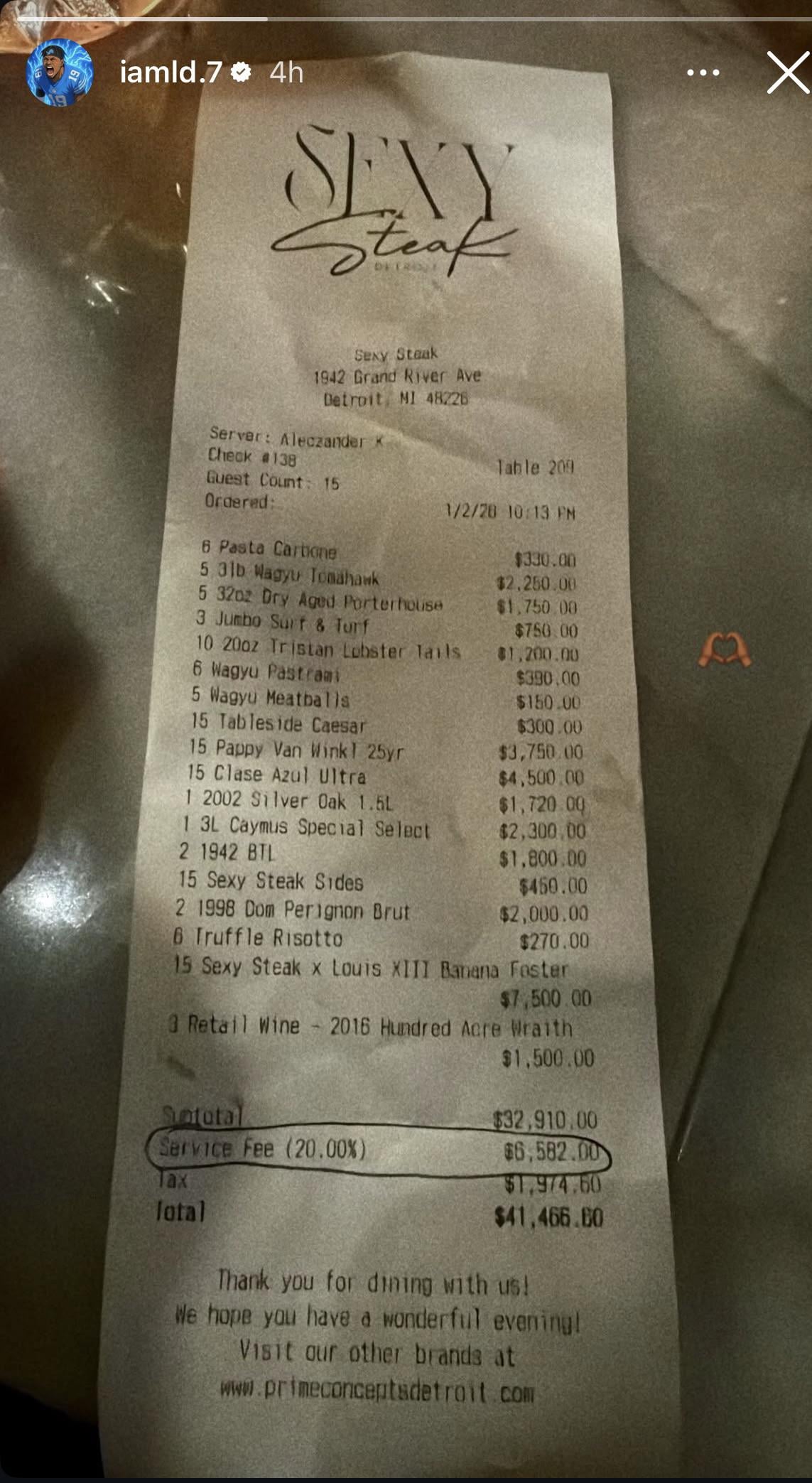 5. Could’ve ate at a more modest restaurant and donated the rest to a Detroit charity, but alright.