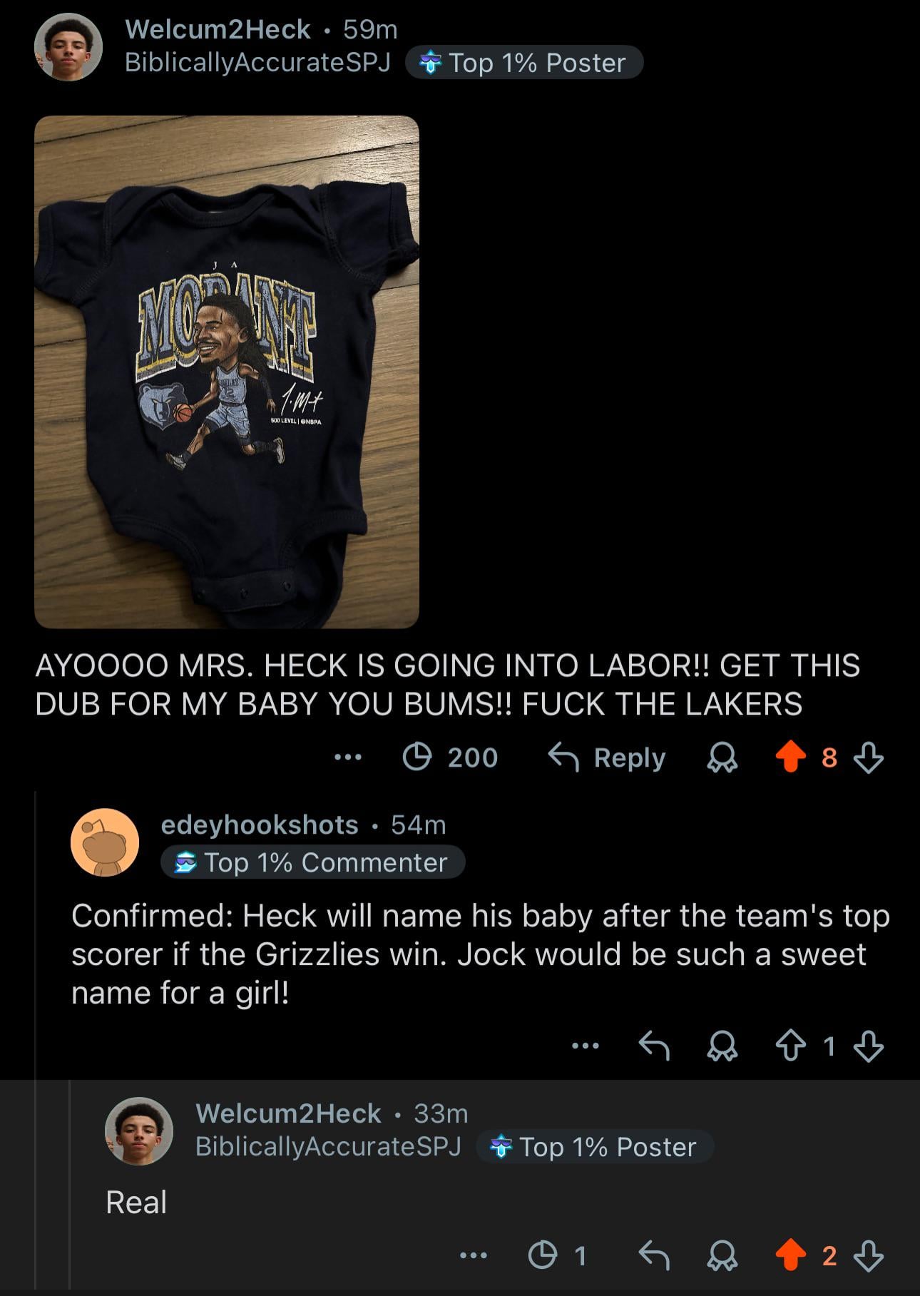 Not here to jitpost, just want to say congrats to Mr, Mrs and baby Heck. May your verticals be high and your injury list short