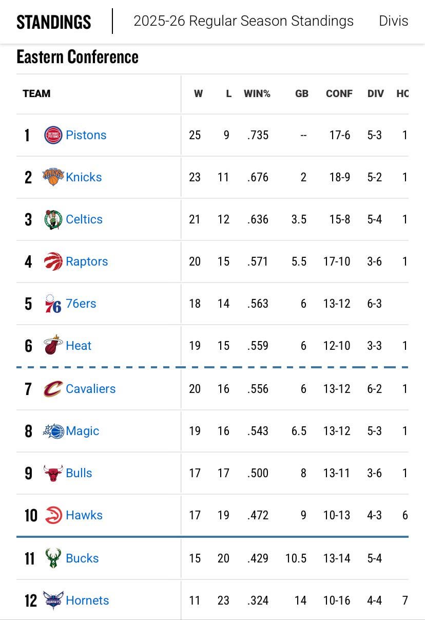 I think we are gonna have a tough time catching Knicks or Pistons unless one of them have some injuries. But we really don’t have any excuse to not be at least the #3 seed this year and we are well within reach of that right now.