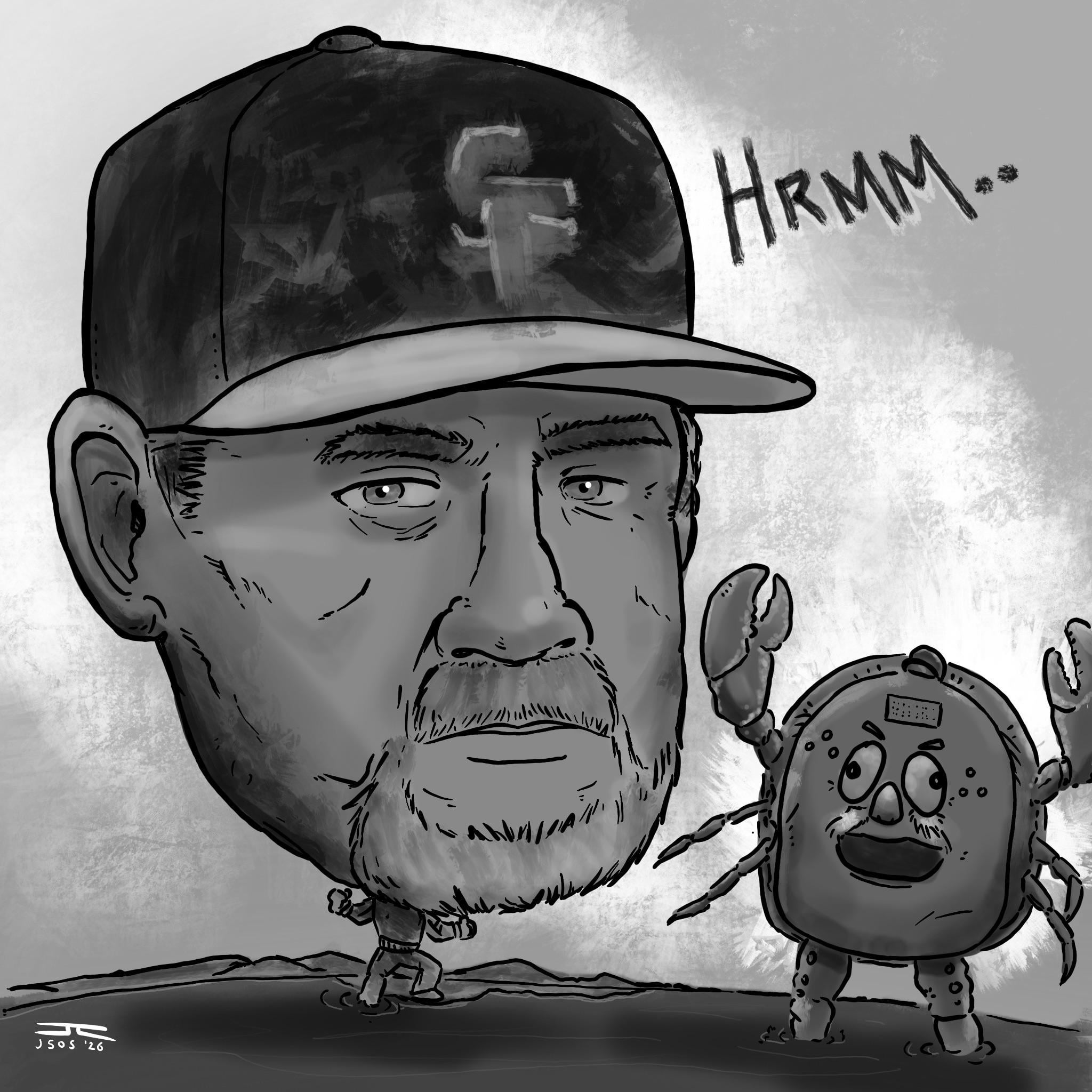 [fan art] Drawing Bruce Bochy’s head bigger every week until February: Week 8