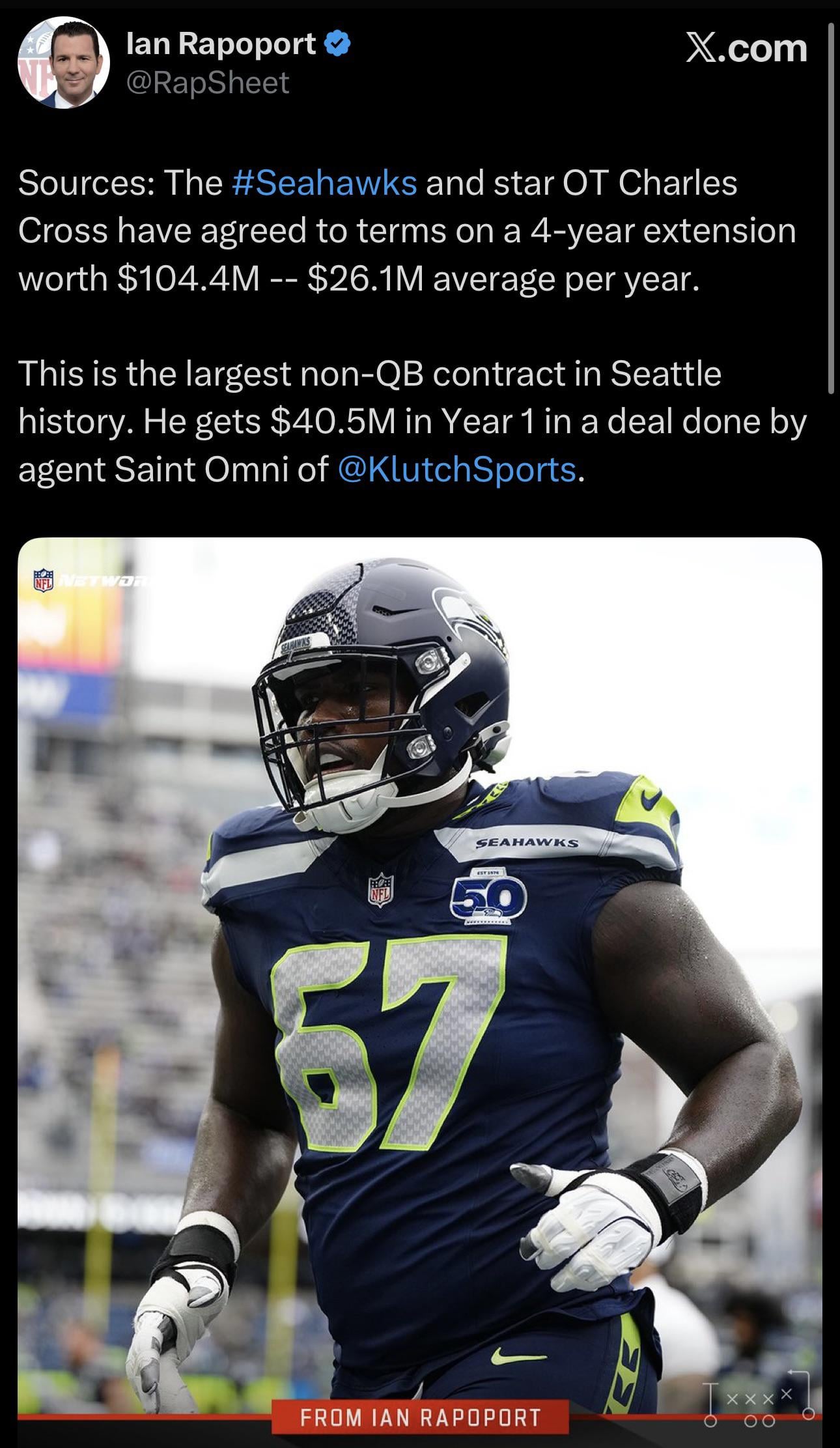 [Rapsheet] Charles Cross and Seahawks agree to 4-year extension