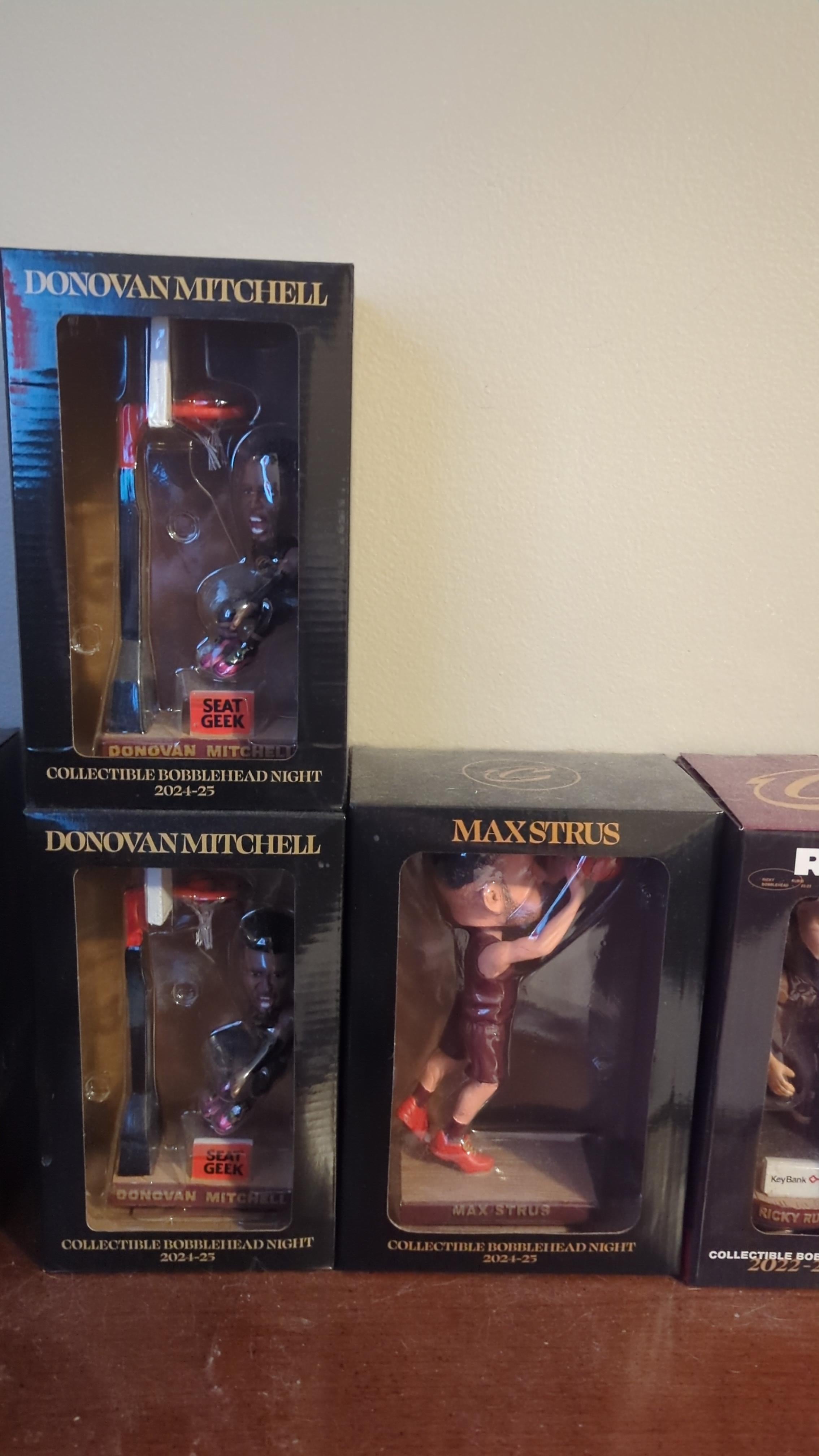 I'm looking to trade my Donovan Mitchell bobblehead for the Max Strus bobblehead shown. Both pictured are unopened.