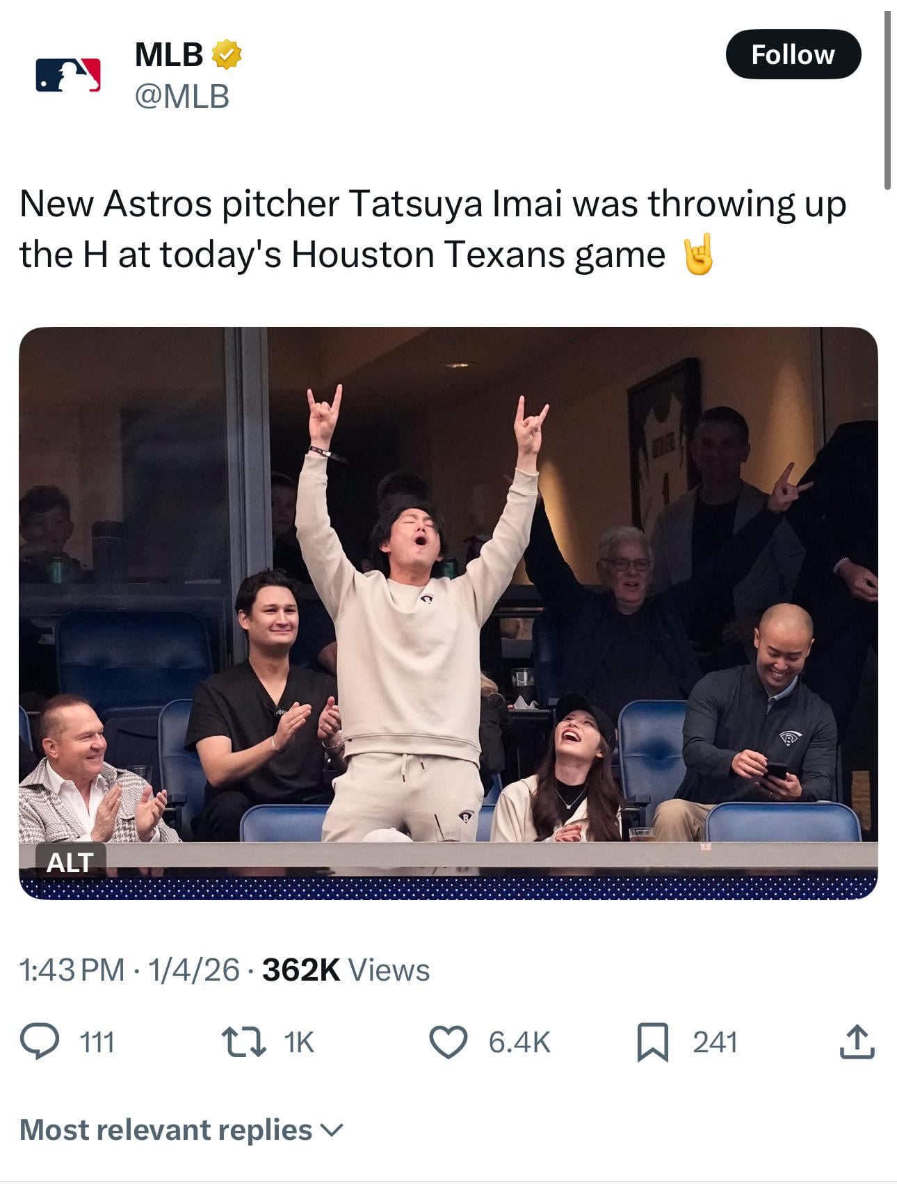 1. For those who don’t follow baseball, he’s one of the most highly anticipated pitchers from Japan and the Astros signing him (who have been trying to penetrate the Japanese market for awhile) is a huge deal.