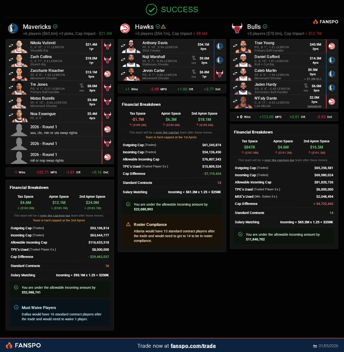The Bulls get Gafford but eat Martin and Hardy's deals and give up a 1st. I'm not sold on the defense of the Trae – Giddey backcourt at all.