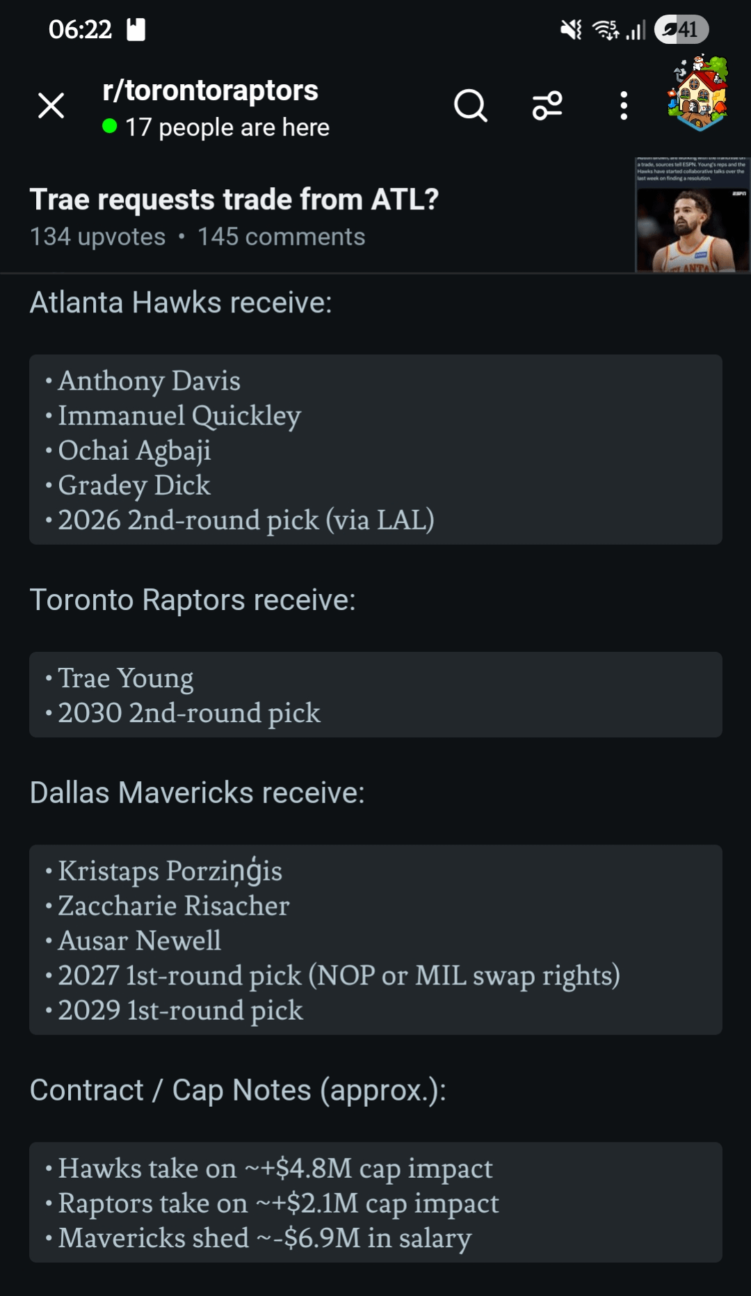 I’m sure Mavs wanted Pelicans pick / Risacher and Hawks wanted to trade Trae… then deal fell apart.