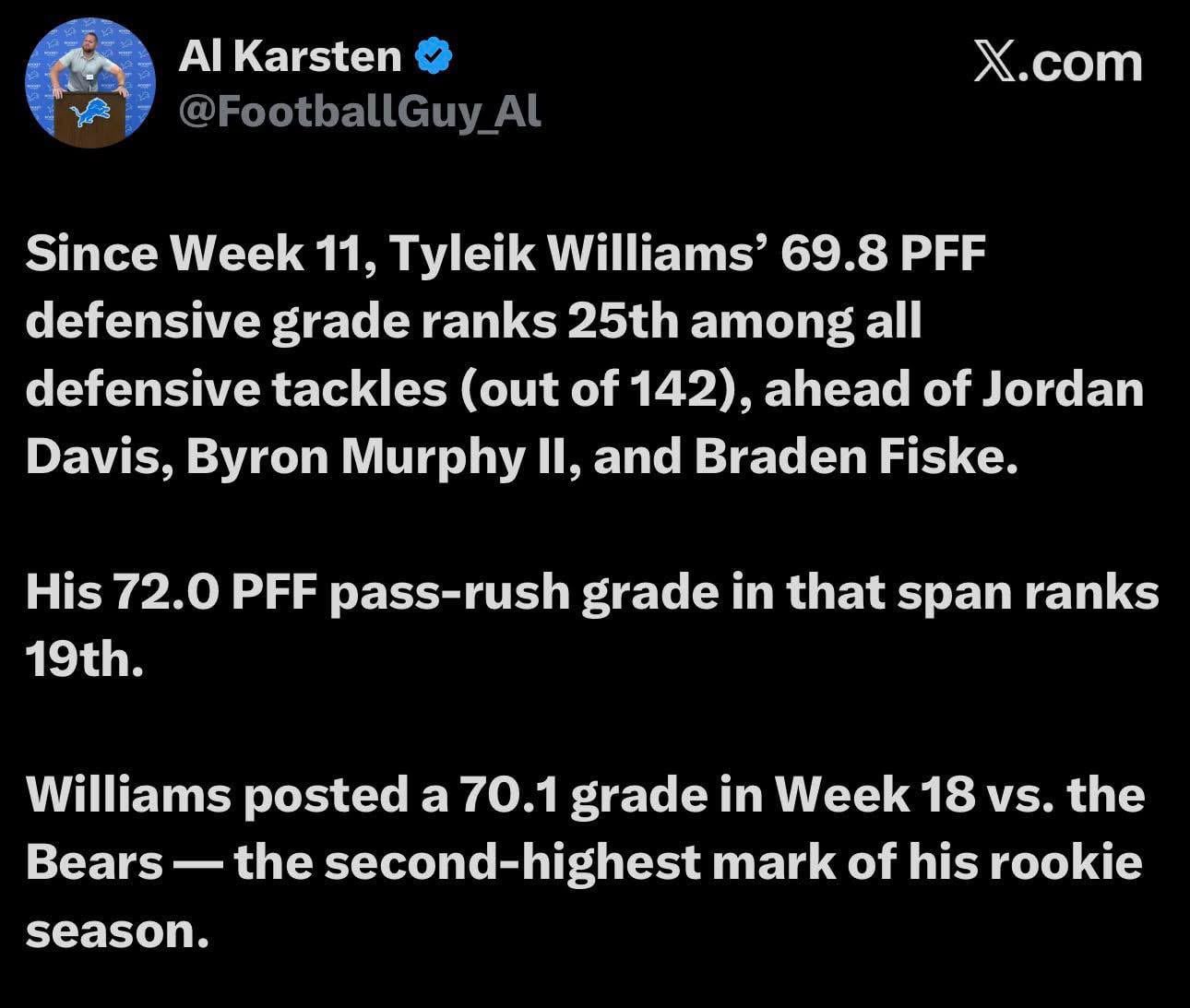 Tyliek had 1 sack, 2 TFLs, and 4 batted balls in 440 snaps.