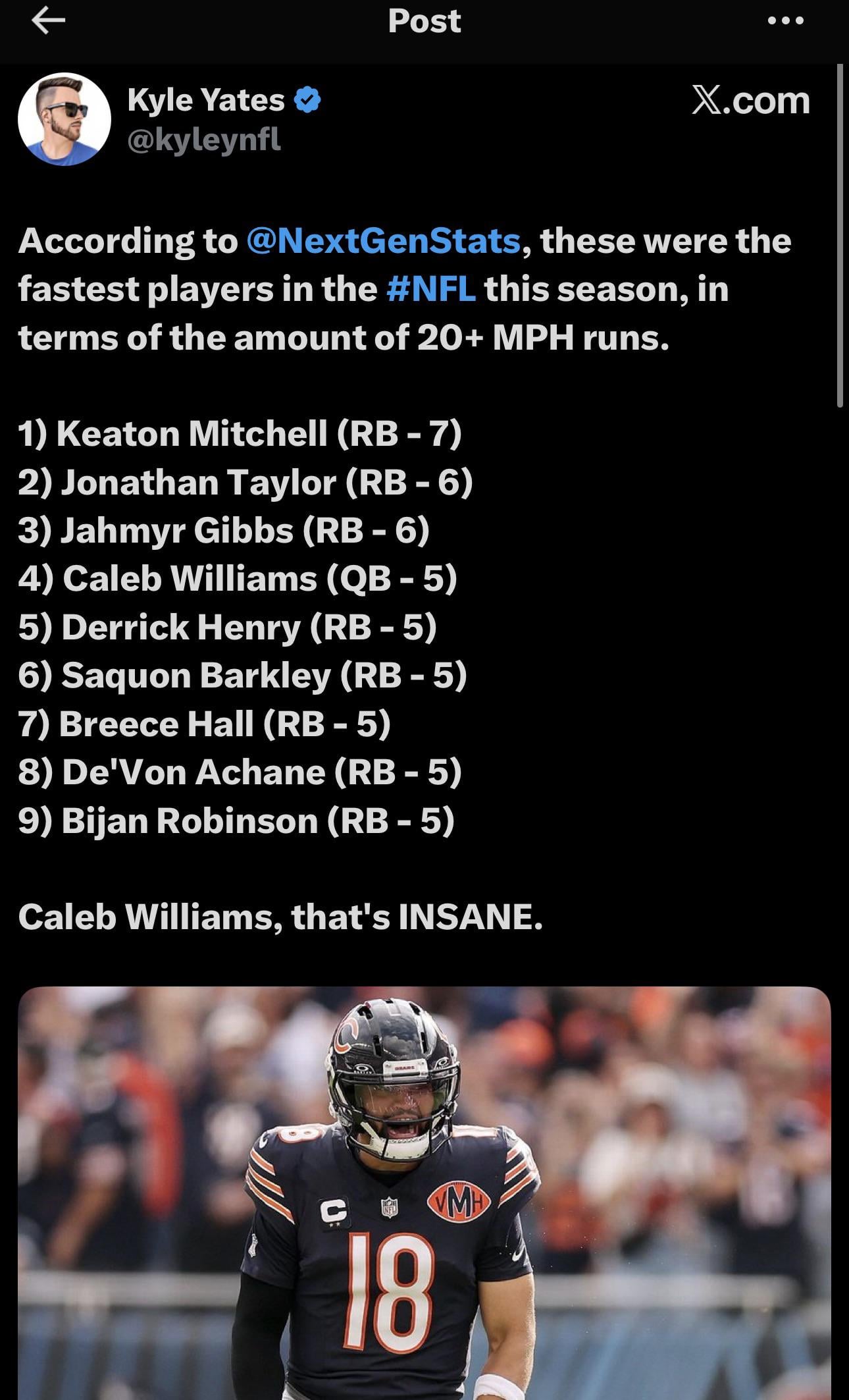 I love that he doesn’t run too often. I’ve seen too many qbs with talemt shorten their career by running recklessly. He runs but also avoids contact. I didn’t realize how fast he was though, wow.