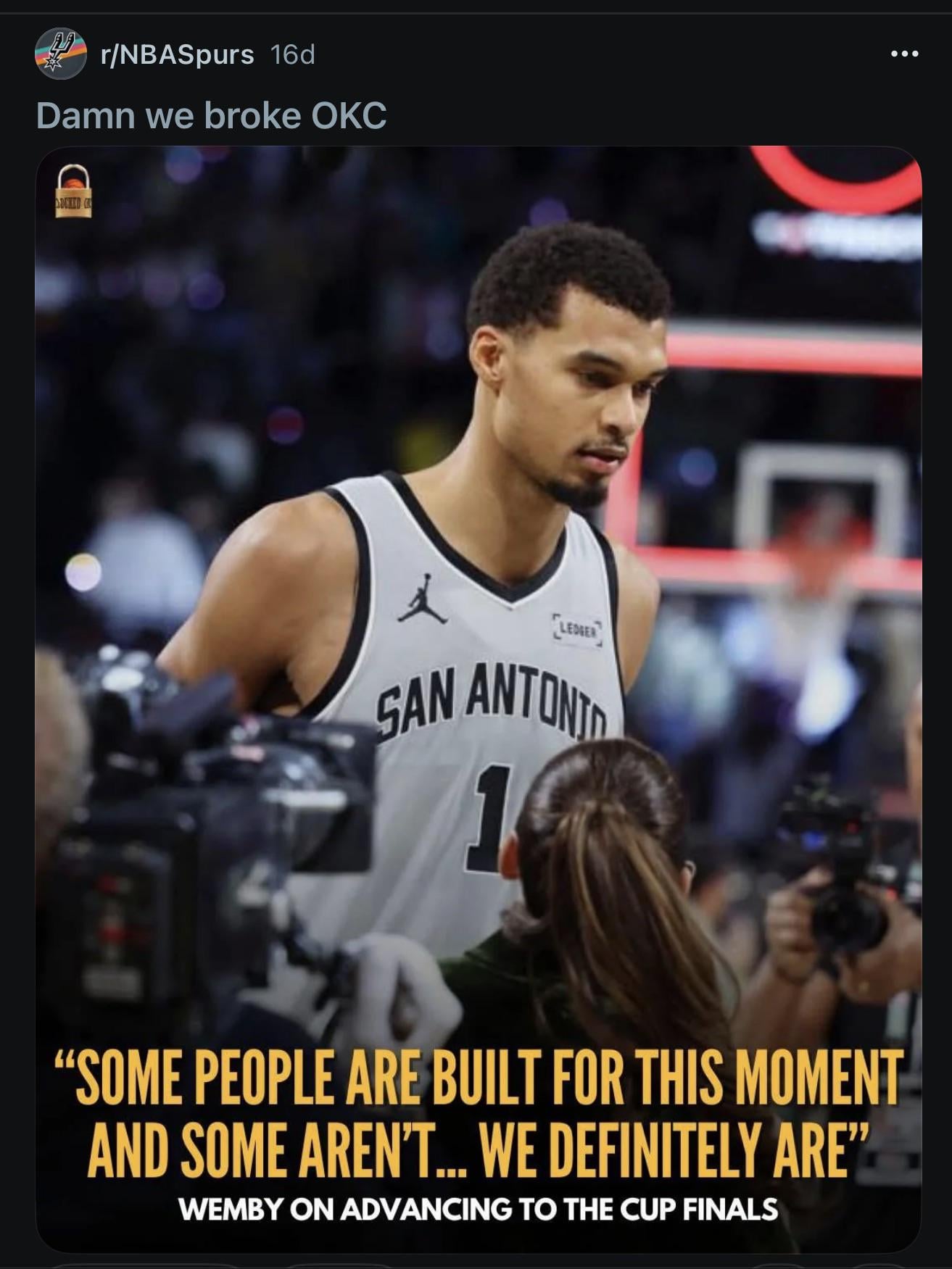 Spurs kinda broke themselves, too. Spurs are 2-3. It would be more telling if the Spurs were right over their shoulder for best record, and/or Jokic was still tug-o-warring with SGA for MVP