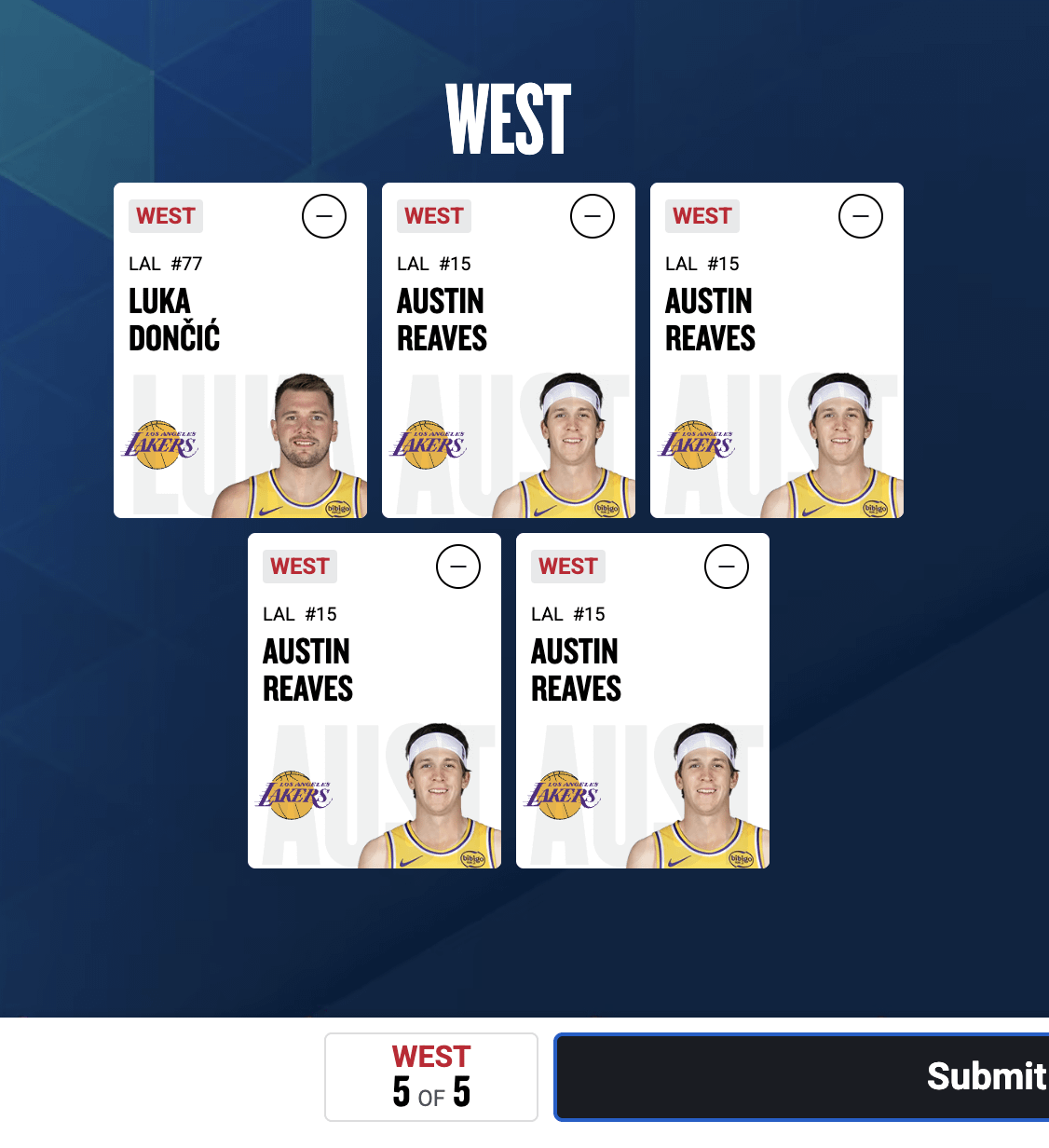 The only correct ballot vote 5 comments No lies detected.  a genuine laker fan who cares about the team you can put the same player in multiple times? LeBron? Leave a ReplyYou must be logged in to post a comment.
