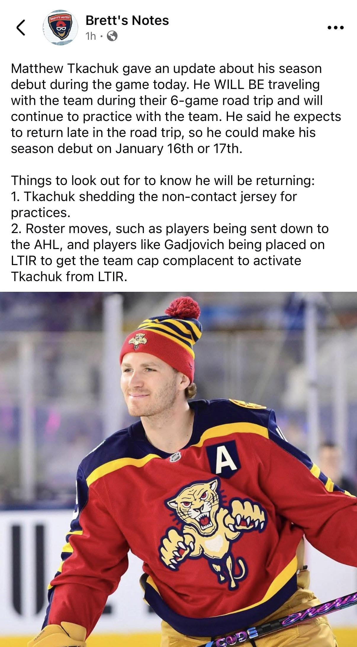 Nice! We shouldn’t have to do anything to make cap space while Barky is out though. A winger will be sent down to make space in the line up.