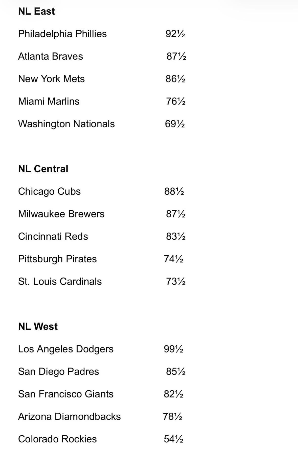 Taking the over on every team in the nl east BUT NOT THE BRAVES