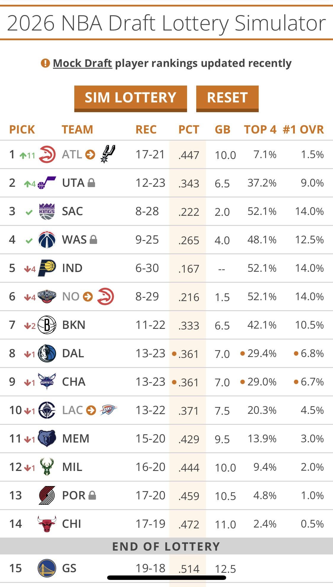 Big interrogation on where Atlanta is gonna end up. Hope their pick ends up in the lottery but who knows…
