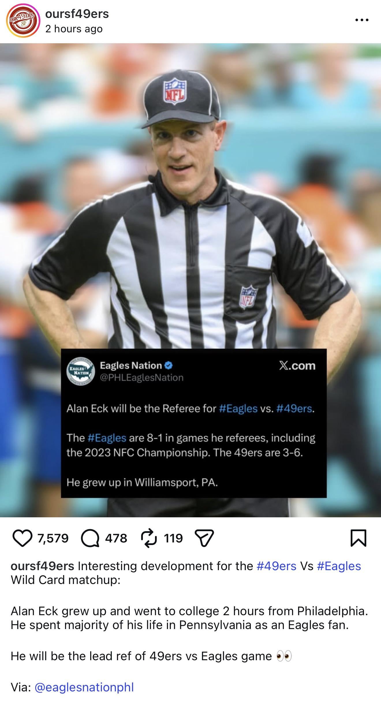Is there only one ref? Maybe cherry pick some other ref that looks like they are biased to the 49ers?