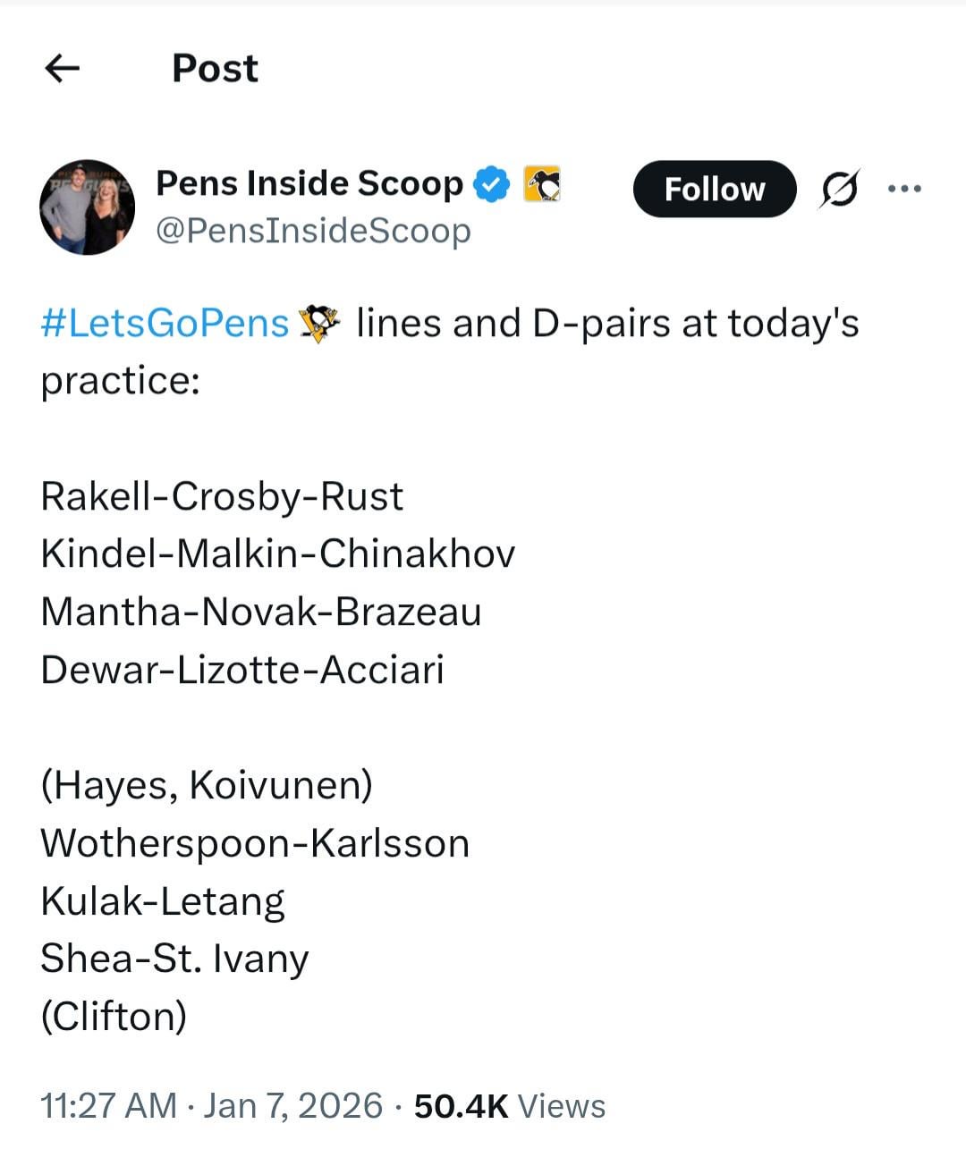 I mean…there’s definitely a part of me that’s sad to see Mantha/Malkin/Braz split up. They were really cooking before the injuries. But I get the idea. Just happy to have Geno back.