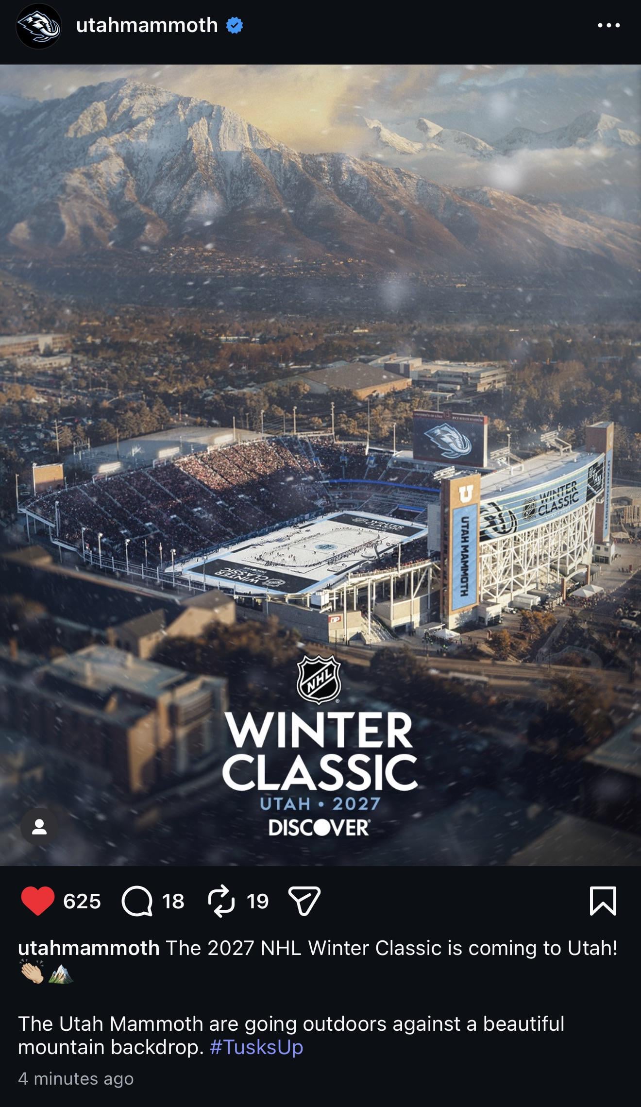 “Ticket information and on-sale dates for the Discover NHL Winter Classic®, including a pre-sale window for Utah Mammoth and Utah Jazz season ticket members, will be announced at a later date.