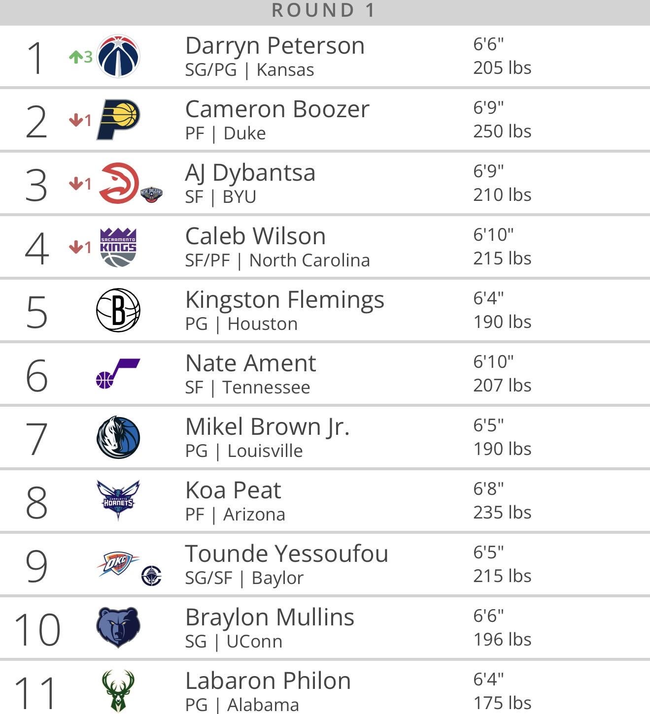Tankathon spin after every L part 6 5 comments For those of us who don’t follow much college hoop, how many of these cats are a sure thing? I’d personally prefer Dybantsa over Boozer, but either would be fantastic for the team. Hoping that the Trae Young trade bumps the Wizards up a tier. I’d take Peterson over Boozer as well. He’s firmly behind AJ and Peterson imo. Vontae Mack always. Leave a ReplyYou must be logged in to post a comment.