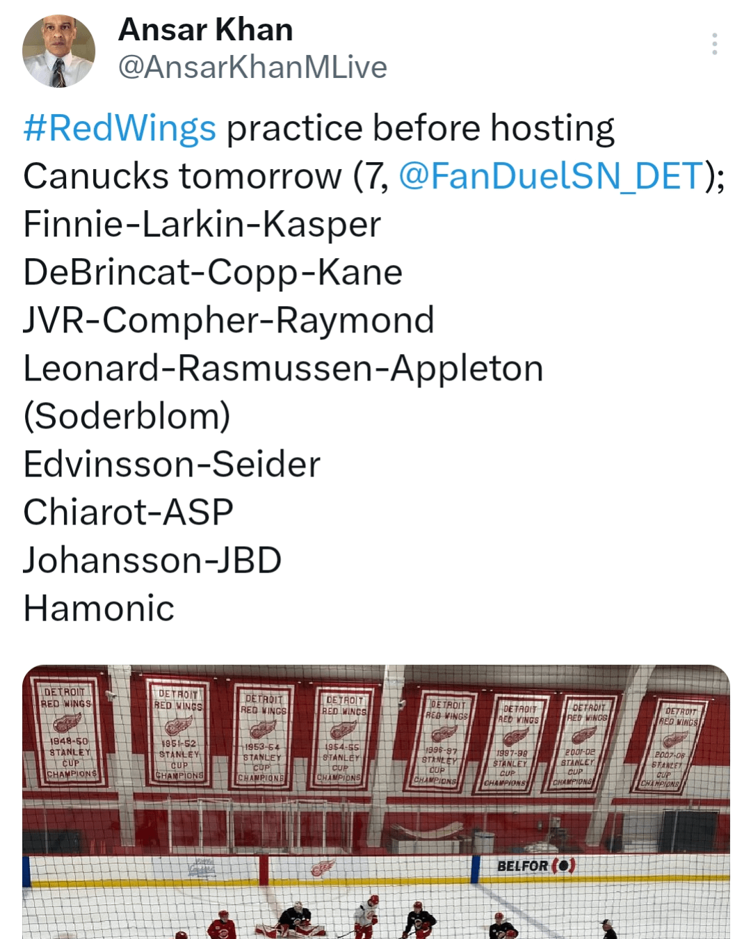 I know some don’t love the idea of splitting Larkin and Raymond, but sometimes spreading your best talent across three lines pays off. Pittsburgh did that in the back to back cup years.