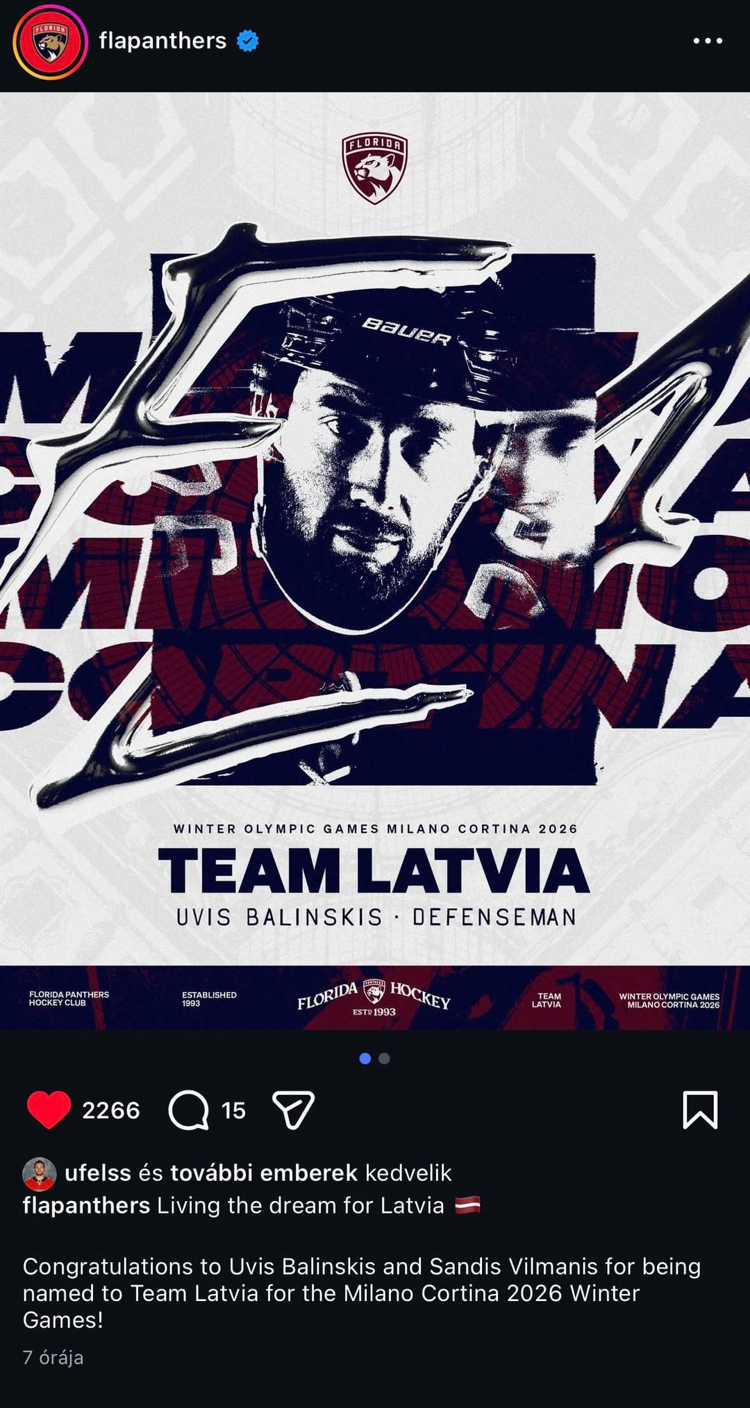 Hello cats, your Latvian living in Utah here. The Panthers were the 2nd team to post about their Latvian(s) being called to the Olympics. The squad was released 14 hours ago so Im impressed they did it 7 hours ago. A certain other team in Florida still is yet to post about their Latvian going to the olympics 😠. The Panthers putting Sandis in the same post is nice too. Was expecting them to do a seperate one if one at all since he is in AHL. But anyways, while I am not necessarily a Panthers fan, watching you guys in person as my first NHL game was awesome, you fans here are awesome, and you treat your Latvians better then the shit blue team in Florida.
