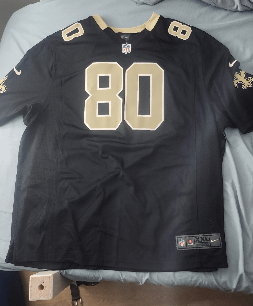 Im from Toronto Canada and I became a fan of the saints last season. After seeing how well we played this year given the expectations, I decided that it was time I finally got a jersey! I looked all over my city and went to many different sporting goods stores and none of them had anything Saints related. (makes sense given the location, its mostly bills and lions merch available here). I looked on Kijiji and found this beauty for only 25 bucks! Its literally brand new and it seems like #80 Jimmy Graham was a Saints legend so im very happy with the purchase.