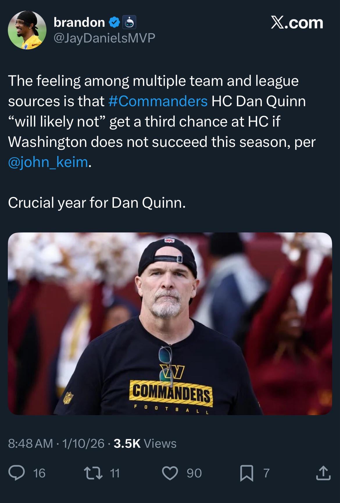 Either this works out and we have the next boy genius or this blows up spectacularly and DQ gets canned and we go with an offensive minded HC finally. I say it’s a win-win situation as a fan,