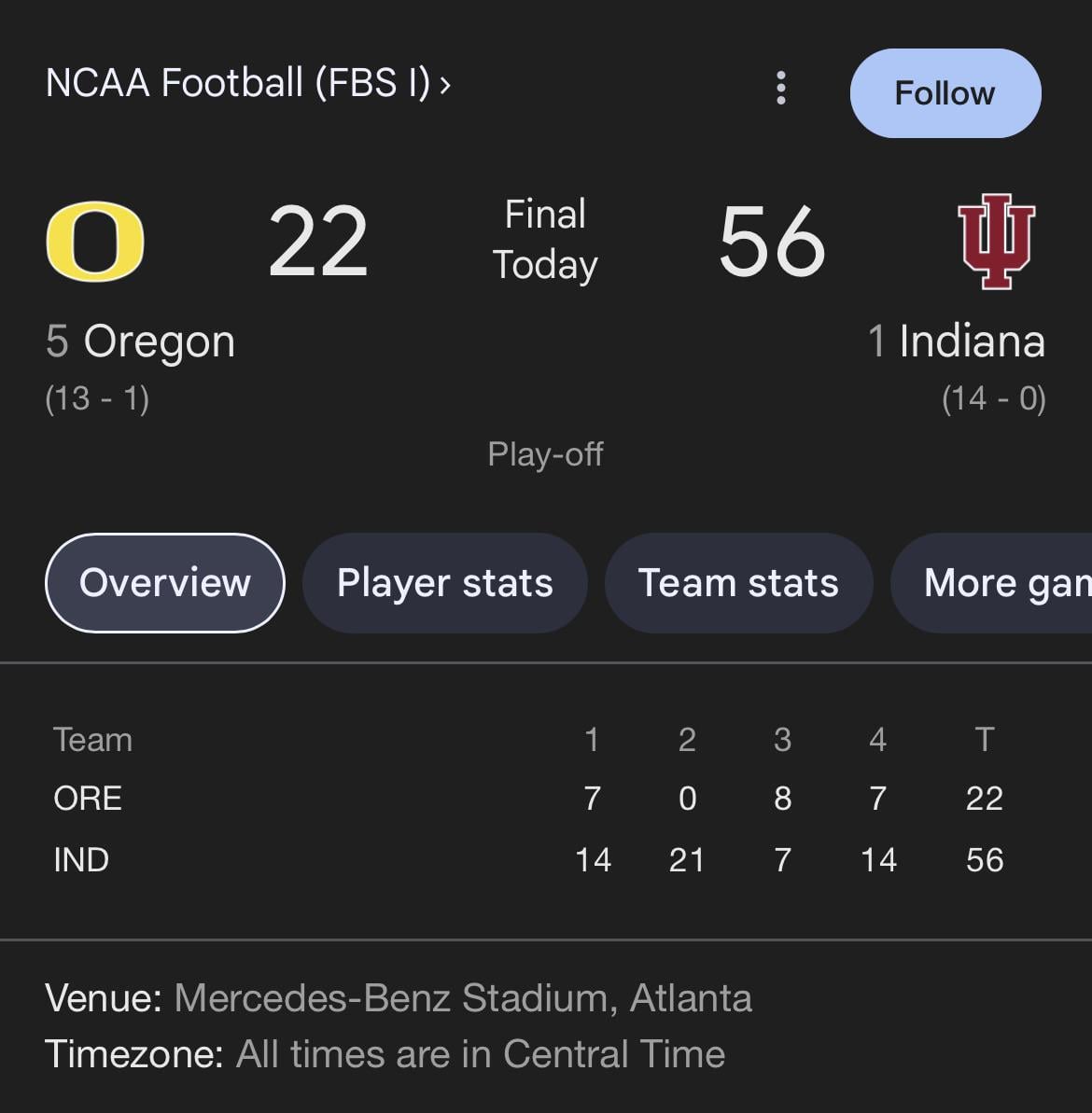 The only playoff game being won in Mercedes-Benz stadium this season 5 comments Welcome to Raider Nation, Mr. Mendoza!! Also the only one lost too, technically. Being the number 1 draft pick is certain hell: Raiders, Jets or Titans. Death, taxes, and Oregon getting dogwalked late in the playoffs are the 3 guarantees in life Well there’s also a “football” semi final there in July Leave a ReplyYou must be logged in to post a comment.
