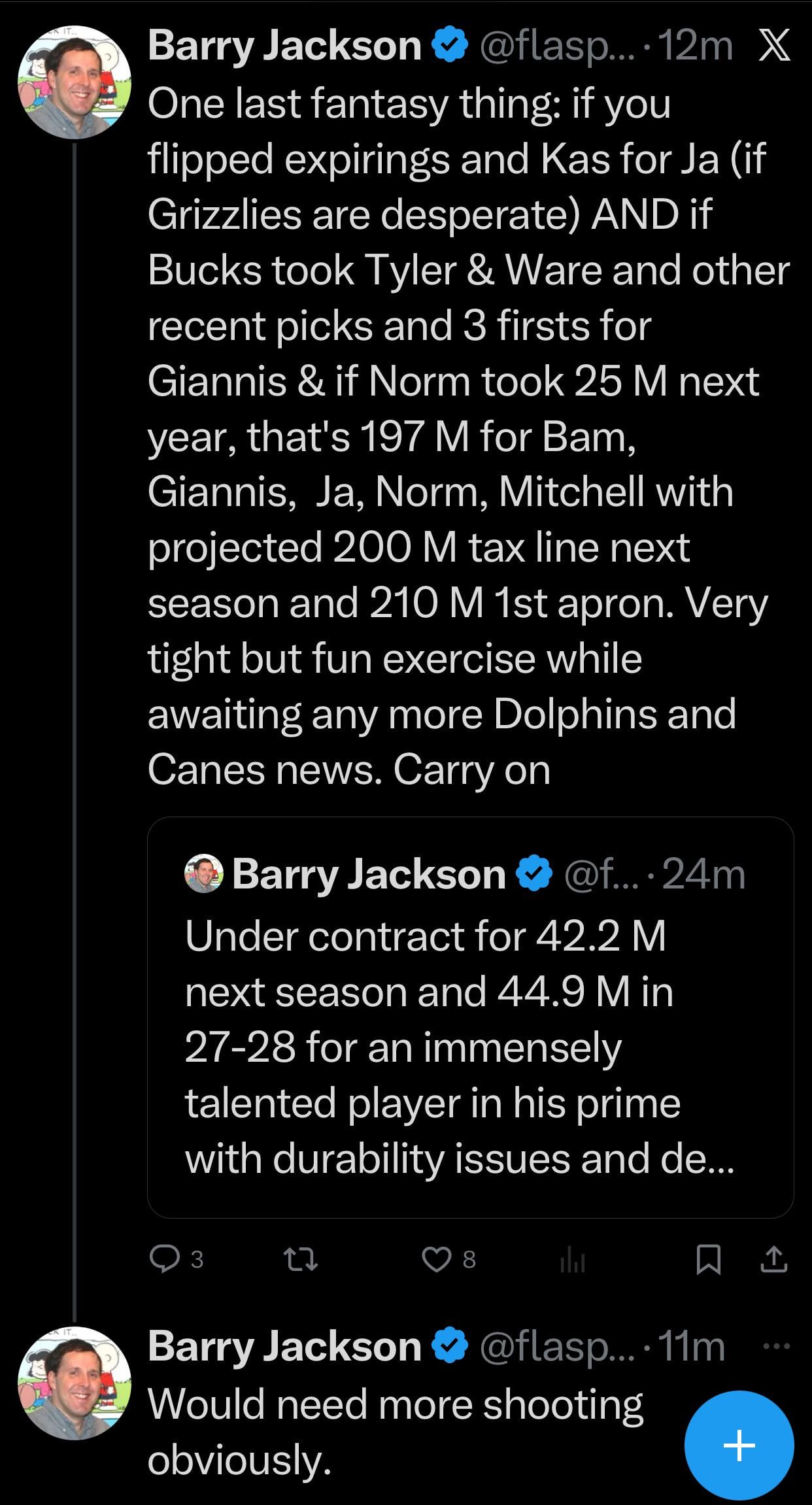 Avoiding tax with Giannis on roster would be pretty funny too