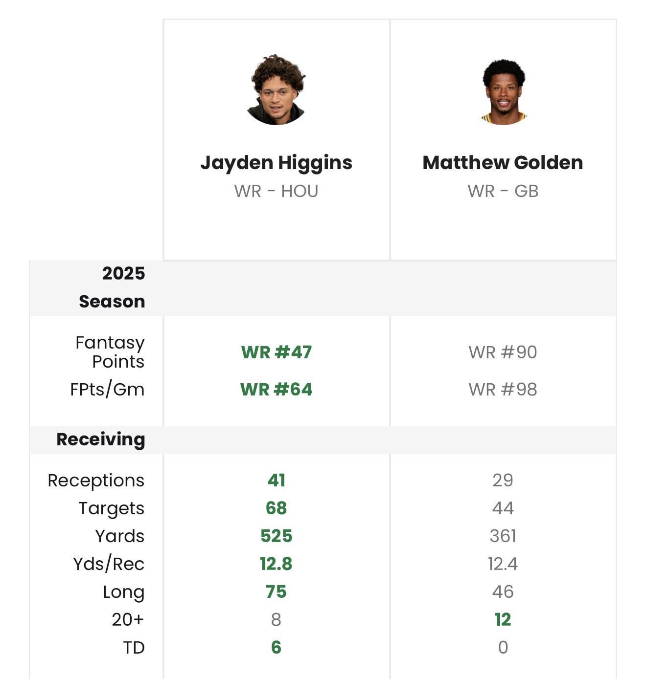 I mean, in Gold’s defense, he’s the WR3 on a team with 3 WR2’s in a scheme he’s extremely underutilized in, I wouldn’t be shocked if his stats lined up closer to Higgins’ were he here from the start