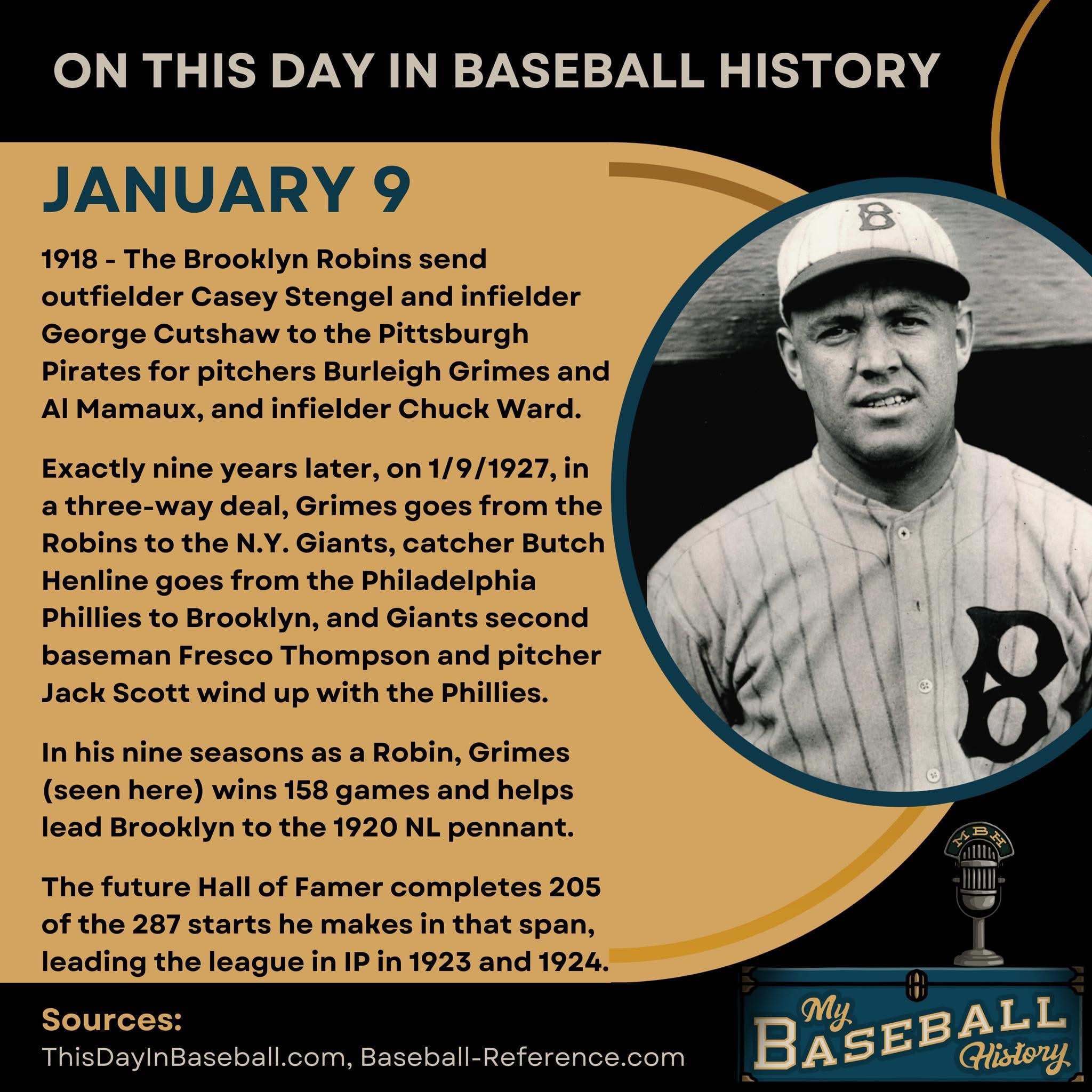 On This Day in Baseball History – January 9 1 comment “Don’t spit(ter) on Burleigh Grimes’ grave” or Superman’s cape. Leave a ReplyYou must be logged in to post a comment.