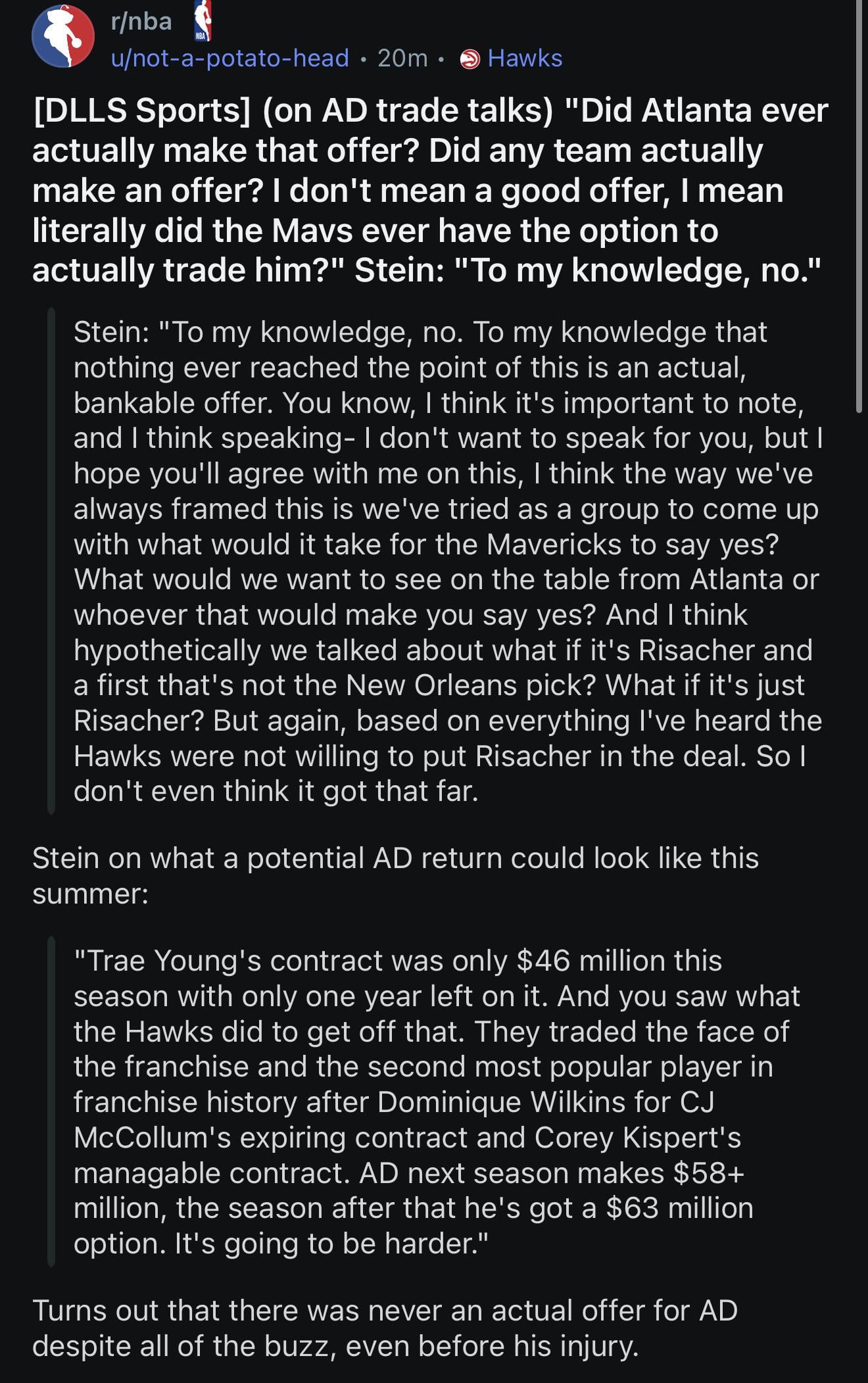 That stump is trying to claim they were only saying what it would take for the Mavs to say yes?Absolute dog shit credibility