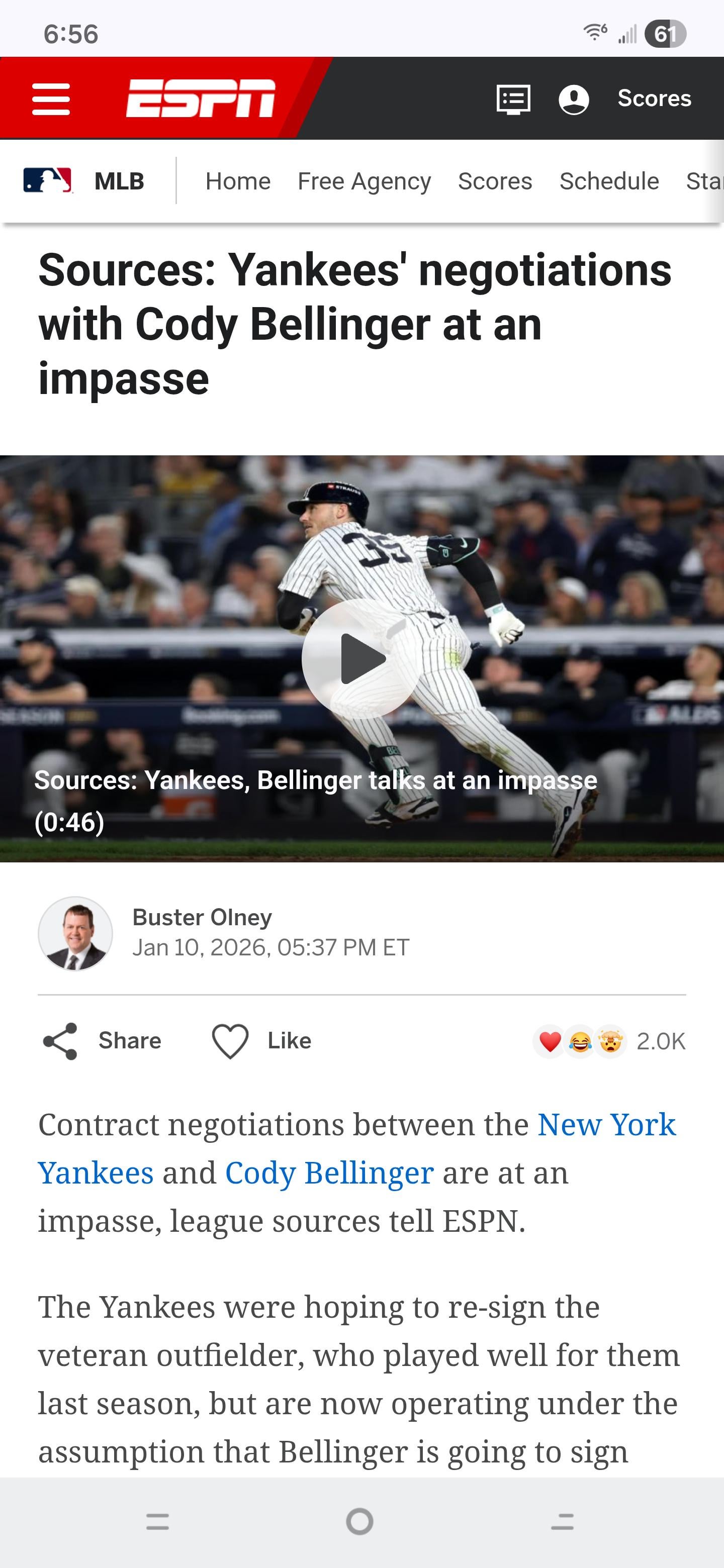 "The Yankees were hoping to re-sign the veteran outfielder, who played well for them last season, but are now operating under the assumption that Bellinger is going to sign elsewhere. New York is now seeking additions elsewhere, sources added."