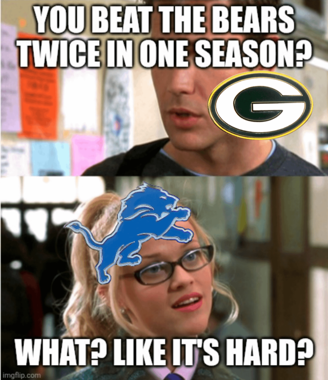 Yes, yes we know. Beating the Bears after mailing in a playoff shot against Max Brosner means winning the Super Bowl. Going to ride beating the Bears twice for 6 months.