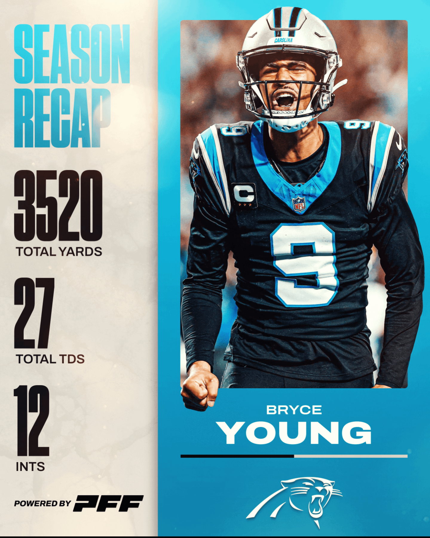 Bryce Young led the league in deep ball accuracy with a catchable percentage of 75 percent on passes that traveled at least 20 yards in the air. I have no idea why the Panthers have such a conservative offense