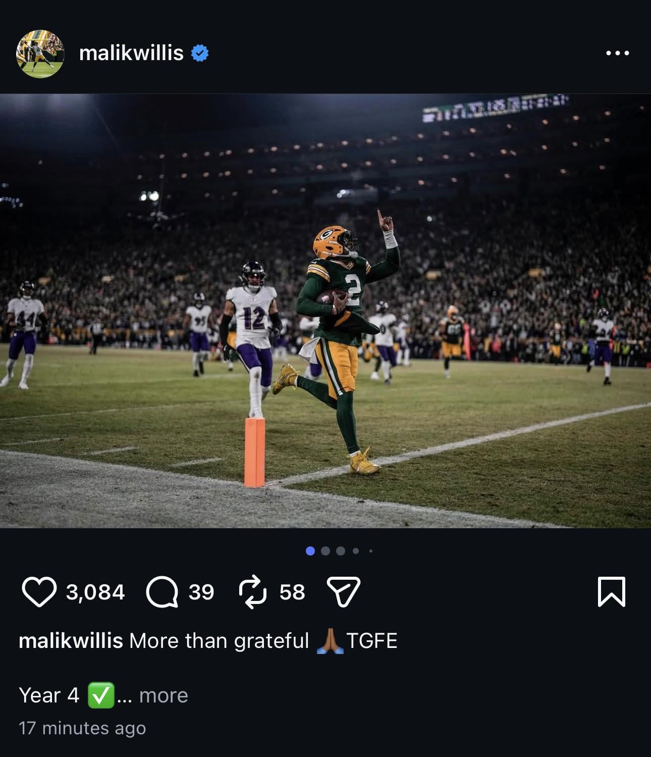 I can’t help but wonder if Malik was given the bench years learning from Rodgers where he would be rn? I hate to let go of him. Especially with love stubbing his toe missing a month. I am ashamed to admit this but I wish love got hooked on painkillers like Rodger’s and Favre