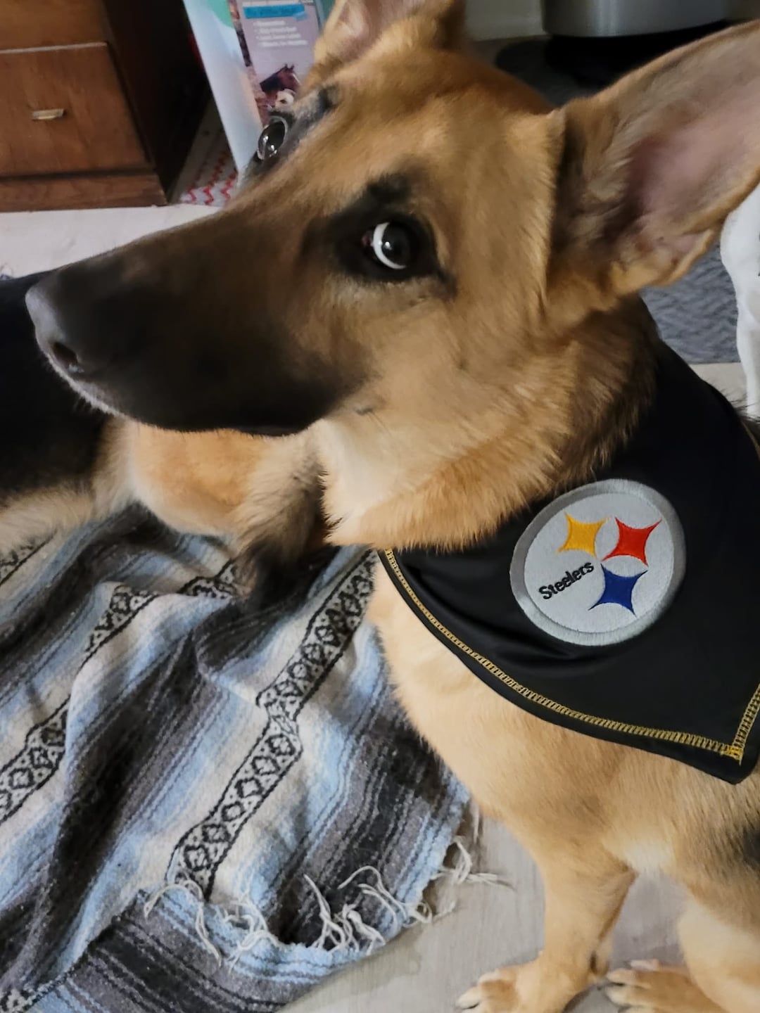 https://preview.redd.it/8lu5r2fcstcg1.jpeg?width=3000&format=pjpg&auto=webp&s=cdcda4ddfbe7432b3b960552a0ffd19f1ac715ba Dont have a steelers bandana but my dog is cheering with your dog
