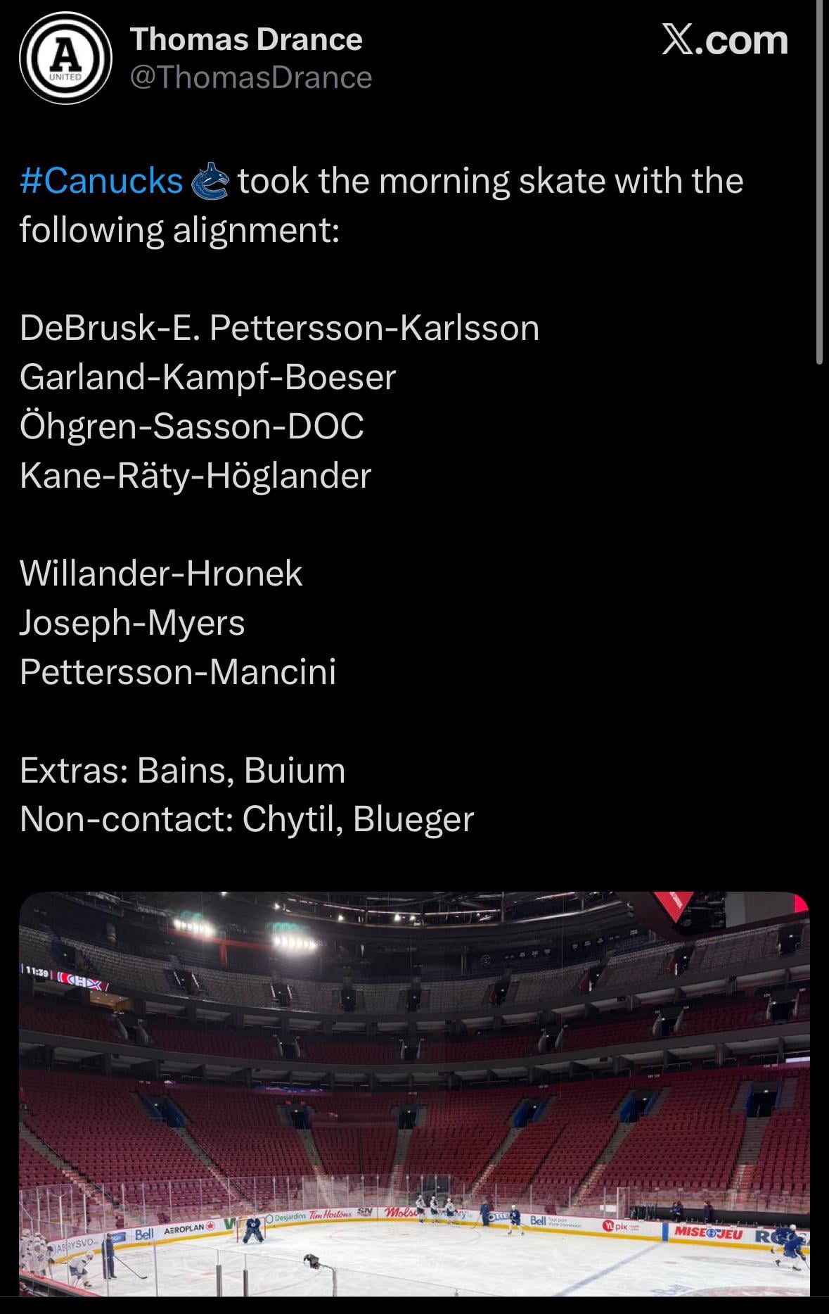 Good idea to sit Buium. He’s got skills but is making too many mistakes lately. Gotta keep remembering he just turned 20.