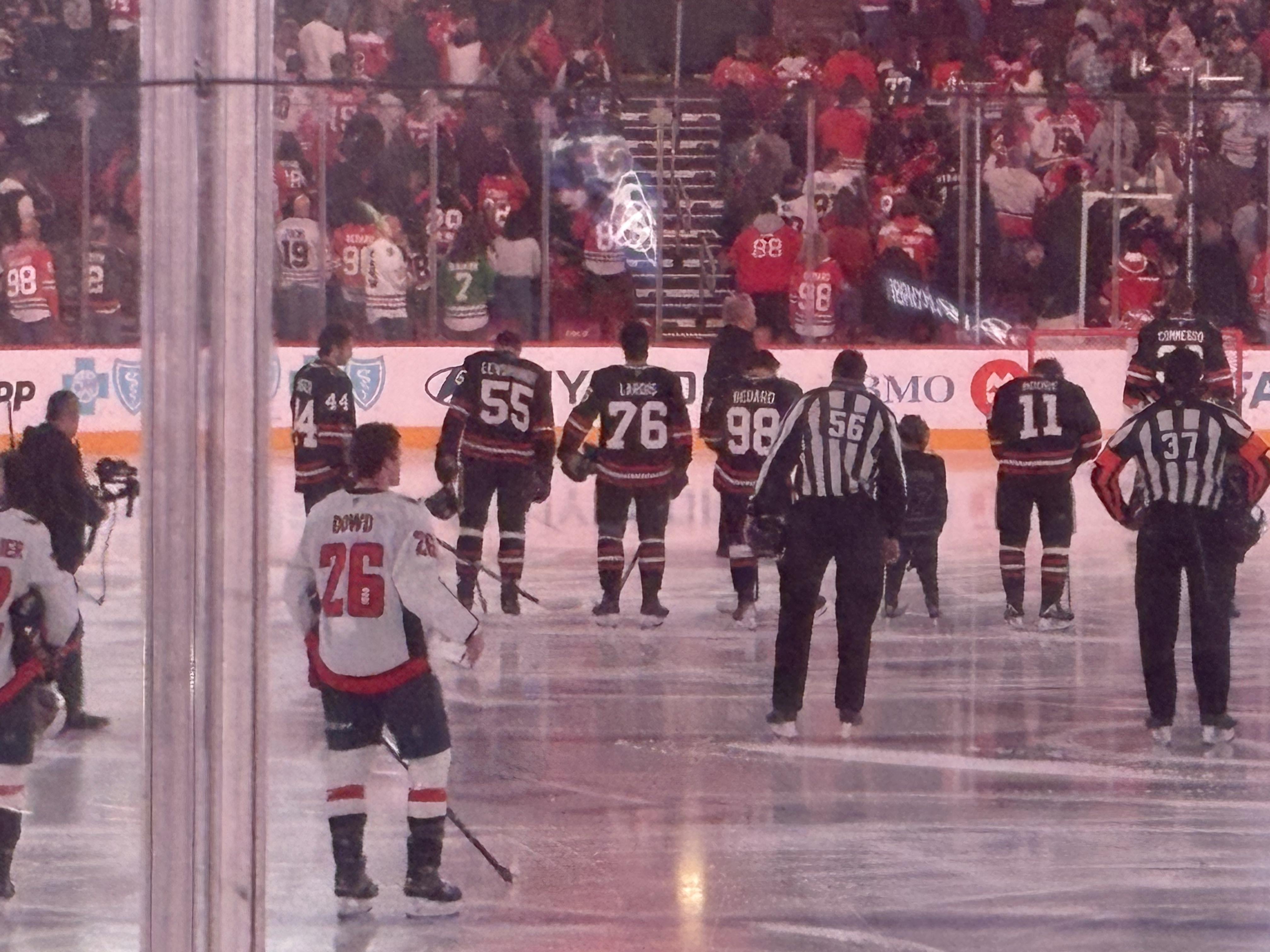 The future, it is here. 7 comments Bedard is the “veteran” forward lol You mean 7? Let’s not forget the young man between Bedard and Moore Kaiser unc You beat me to it! I’m in 224, squinted and saw those 5 numbers & Commesso during the anthem 🥹  I’m pretty sure I was sitting right behind you. I was wearing the Grimson jersey. Lardis needs to play on the 1st or 2nd line all game not just the first shift Leave a ReplyYou must be logged in to post a comment.