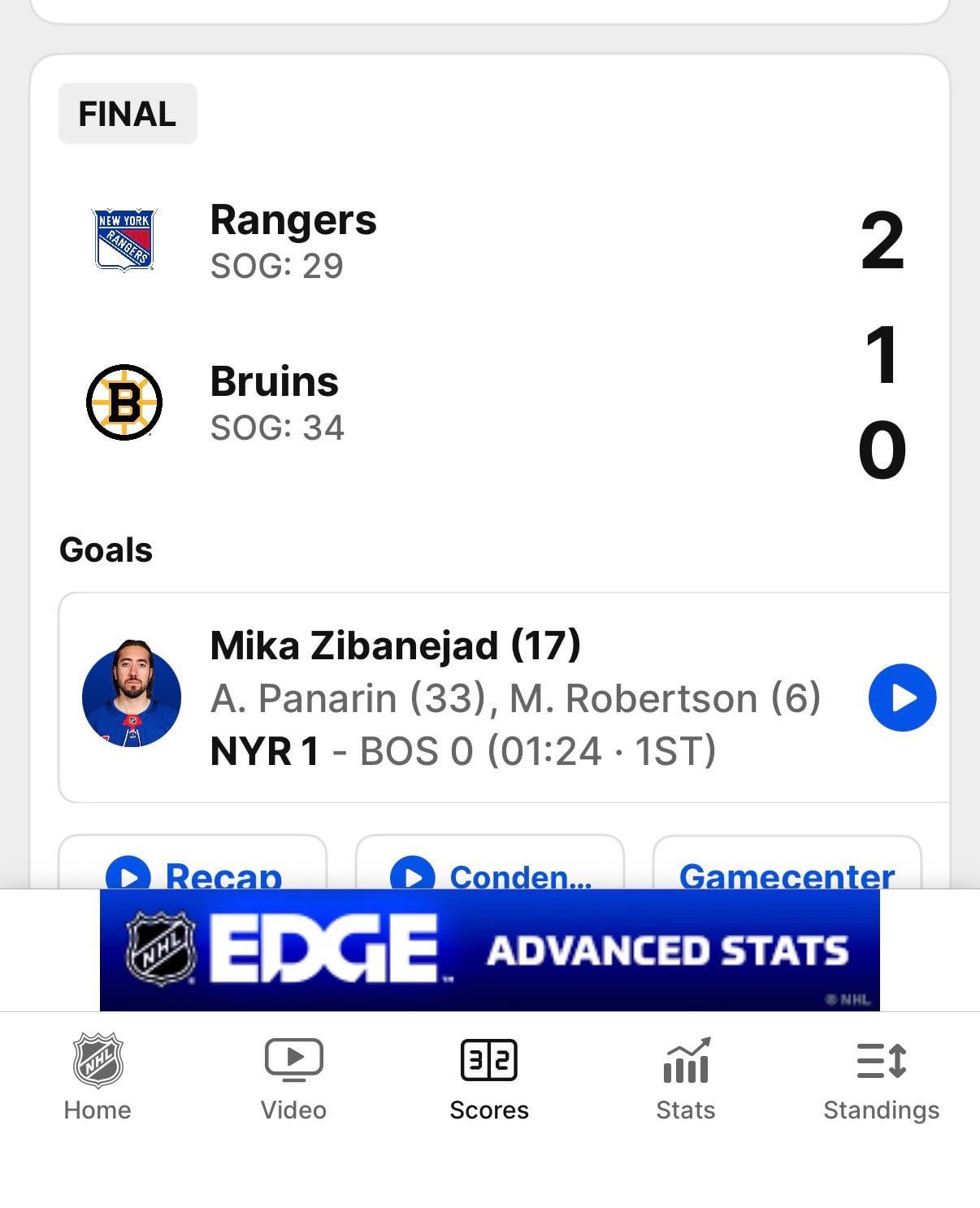 I didn’t realize you were referencing yesterdays game and thought a rangers fan posted a 2-1 win lol