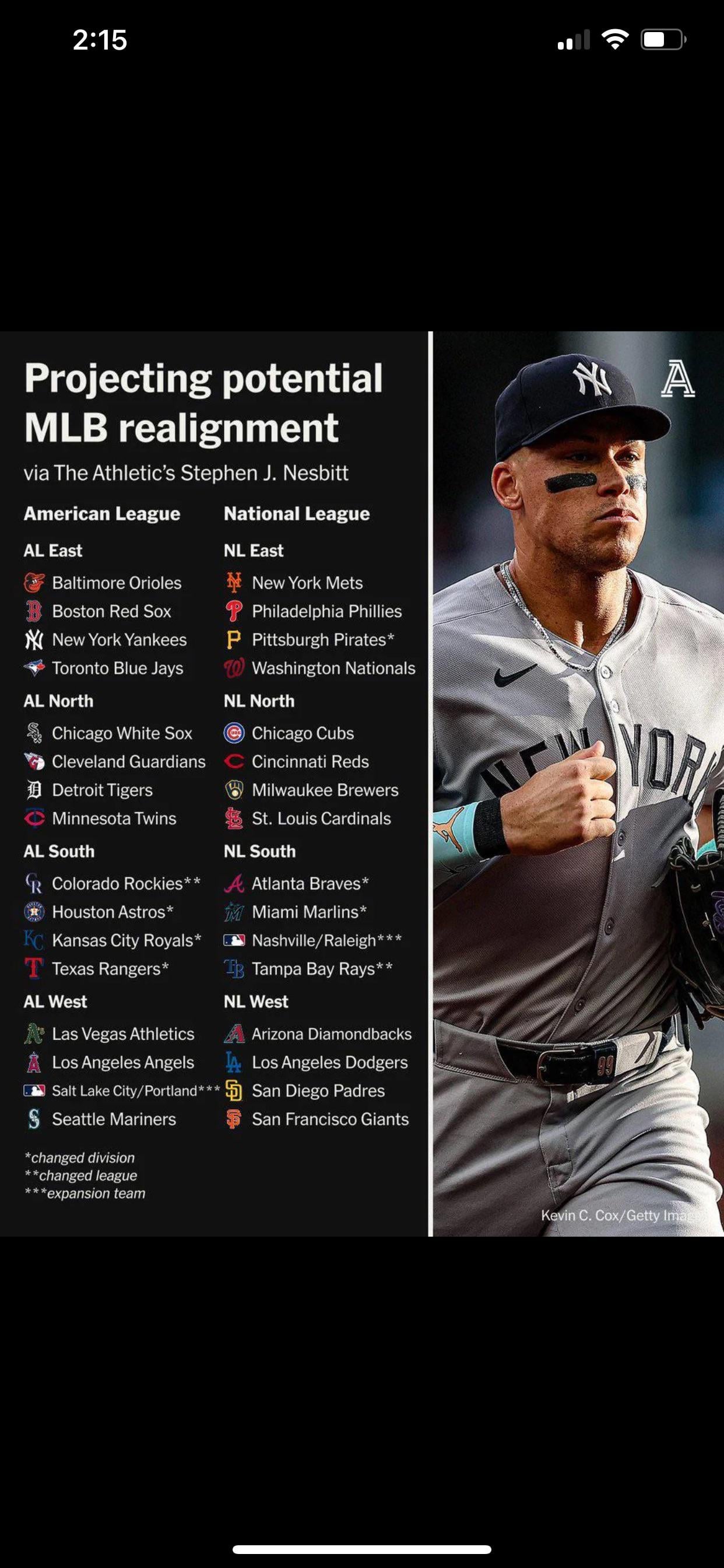 I feel like the Rays and Astros should switch here. Get the Texas teams out of the same division/league like all the other multi state teams sans Cali. Also Astros have a history in the NL unlike the Rays.