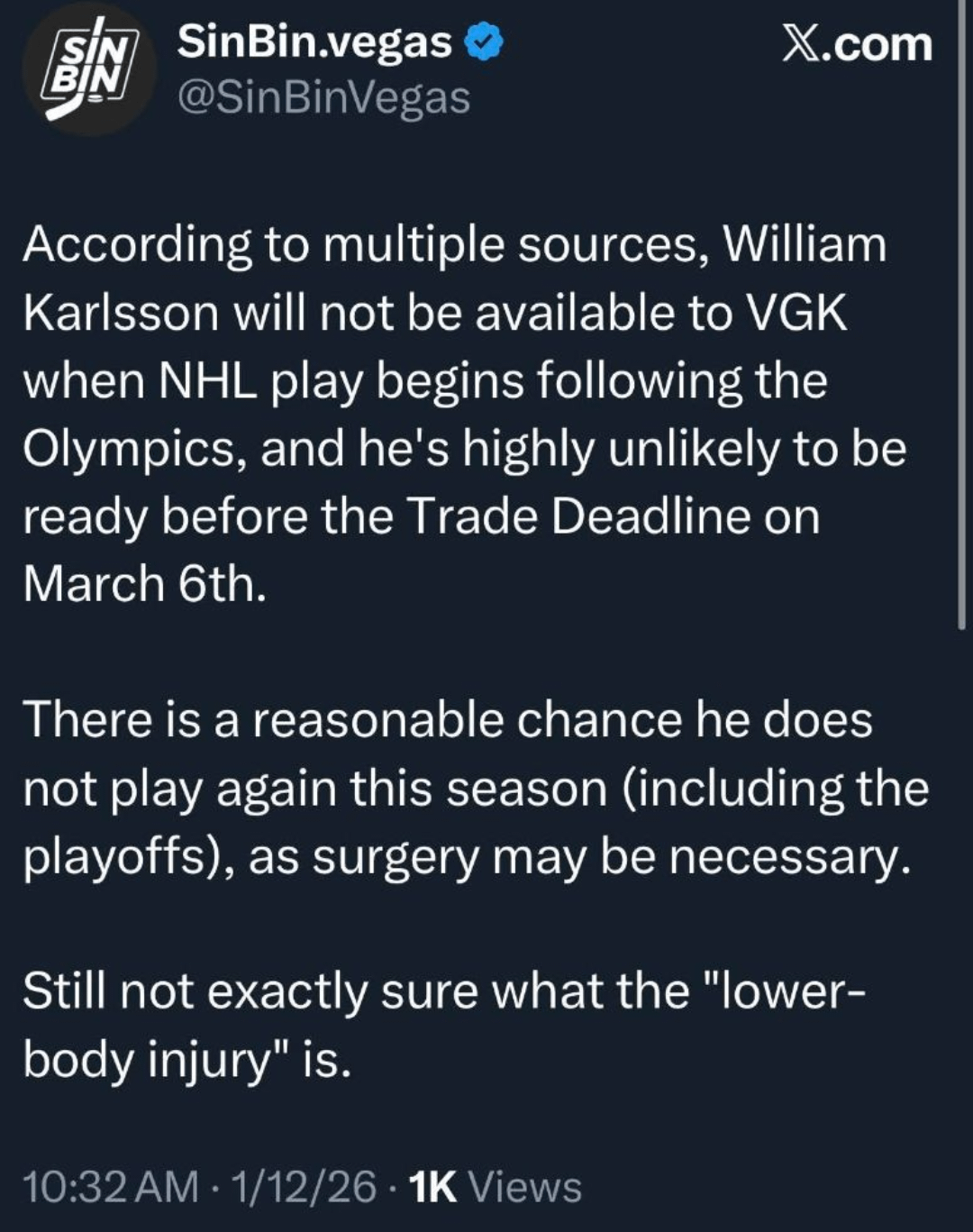 Karlsson Update (It isn’t good)