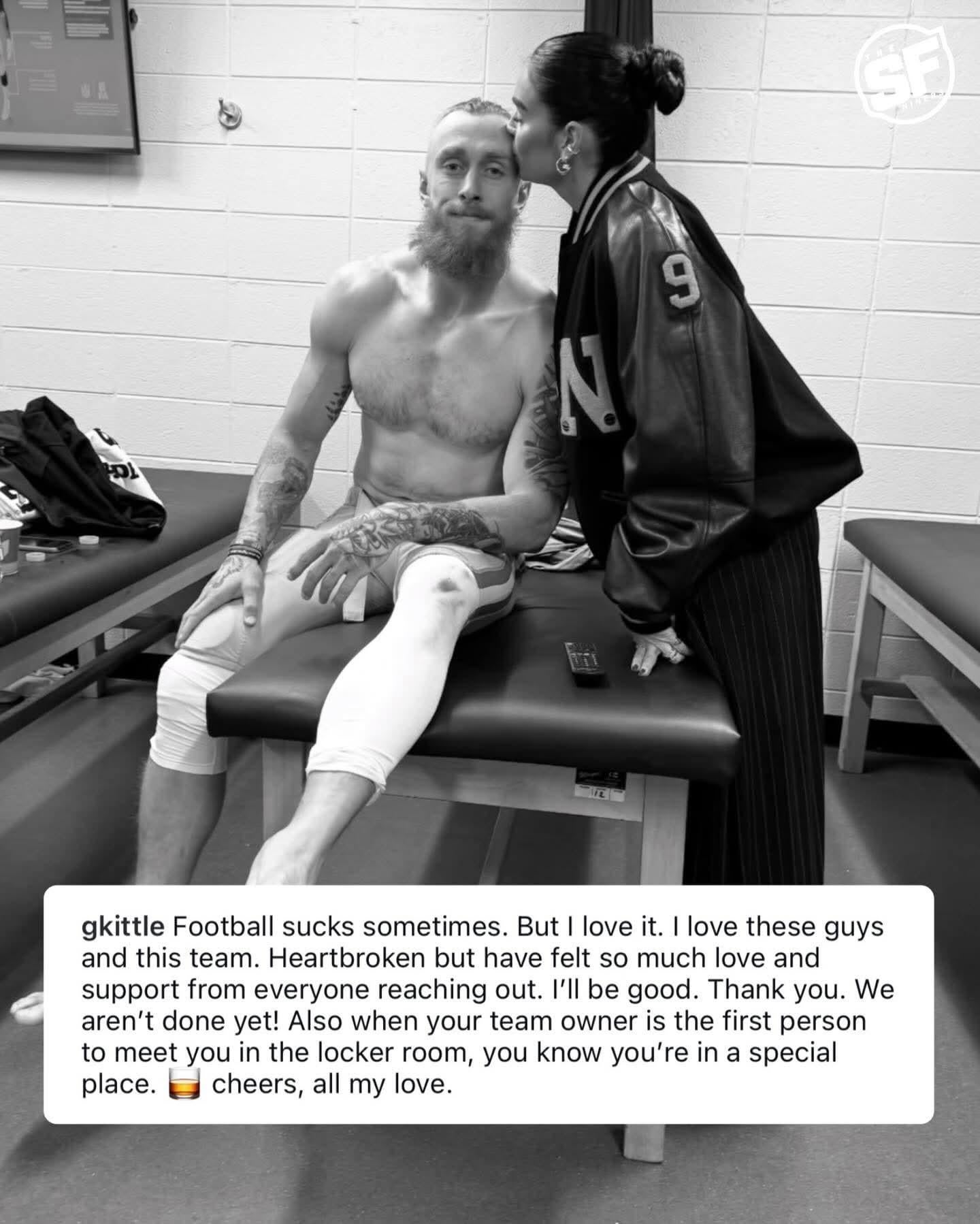 Hurting for you Kittle. Thank you for always giving it 100!! Wishing you a speedy recovery and hoping you feel the love from Niner Nation!!