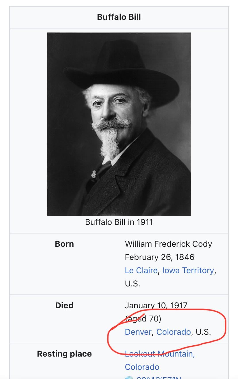 We’ve had a singular Buffalo Bill die in Denver. One more (preferably this week) and it will be Buffalo Bills.